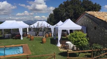 Muy cerca de Barcelona, en el corazón del Penedés, masía catalana del Siglo XII ubicada sobre una pequeña colina rodeada de viñedos.