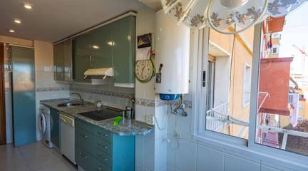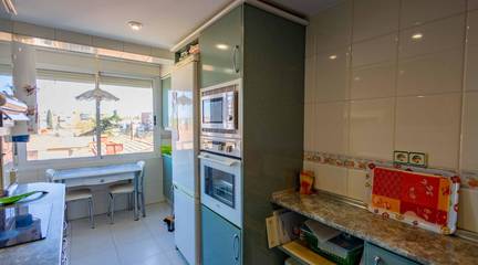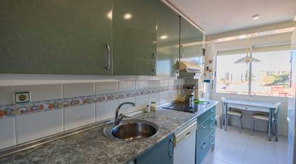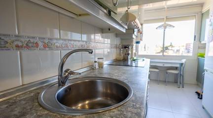 La distribución es inteligente y funcional, con espacios luminosos y perfectamente aprovechados. Al entrar tenemos un salón comedor y una cocina totalmente equipada y separada con una estética celosía. El salón cuenta con una agradable terraza.