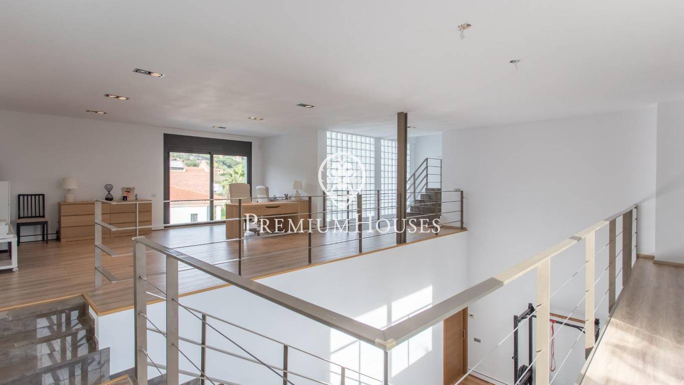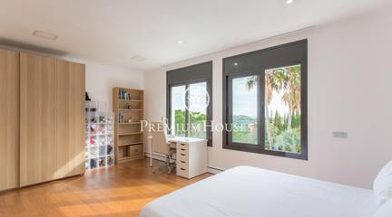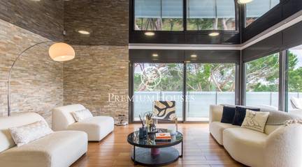We present, in exclusive, a spectacular luxury house located in the prestigious urbanization of Rocaferrera, Sant Andreu de Llavaneres. This property, with its avant-garde design and cubist structure, is a modern architectural jewel that stands out for its minimalist style and elegance. As you enter the property, an automatic gate opens up to allow you to comfortably park up to two cars in a covered parking area, which connects directly to the house. The main entrance, through an impressive gate of unique design, leads into a spacious hallway that connects to a bright living room, which extends onto a terrace with artificial grass, ideal for enjoying the sun and the outdoors.From the main living room, an elegant staircase leads to a second living room on the upper floor, which offers access to an uncovered terrace with panoramic views of the Mediterranean Sea, creating a perfect setting for relaxing and contemplating the scenery.In the night area, designed with maximum security and privacy in mind, you will find a security door that gives access to three bedrooms and two bathrooms. The master suite, with private bathroom and sea views, stands out for its comfort and style. The other two bedrooms, overlooking the pool, share a full bathroom. The entire sleeping area has underfloor heating through the wall edge, providing a warm and cosy atmosphere.On the ground floor, via a staircase from the entrance hall, you will find the social area of the house. Here, you will find a spacious and modern open-plan kitchen, fully equipped with state-of-the-art appliances. Next to it, you will find the dining room and an additional cosy lounge, ideal for family gatherings. This area connects directly to the outdoor terrace and swimming pool, offering a space for leisure and relaxation surrounded by elegance and comfort.In addition, the house has a laundry room and a guest toilet on this floor. Don't miss the opportunity to live in one of the best areas of the Maresme, in a house that combines luxury, comfort and modern design.