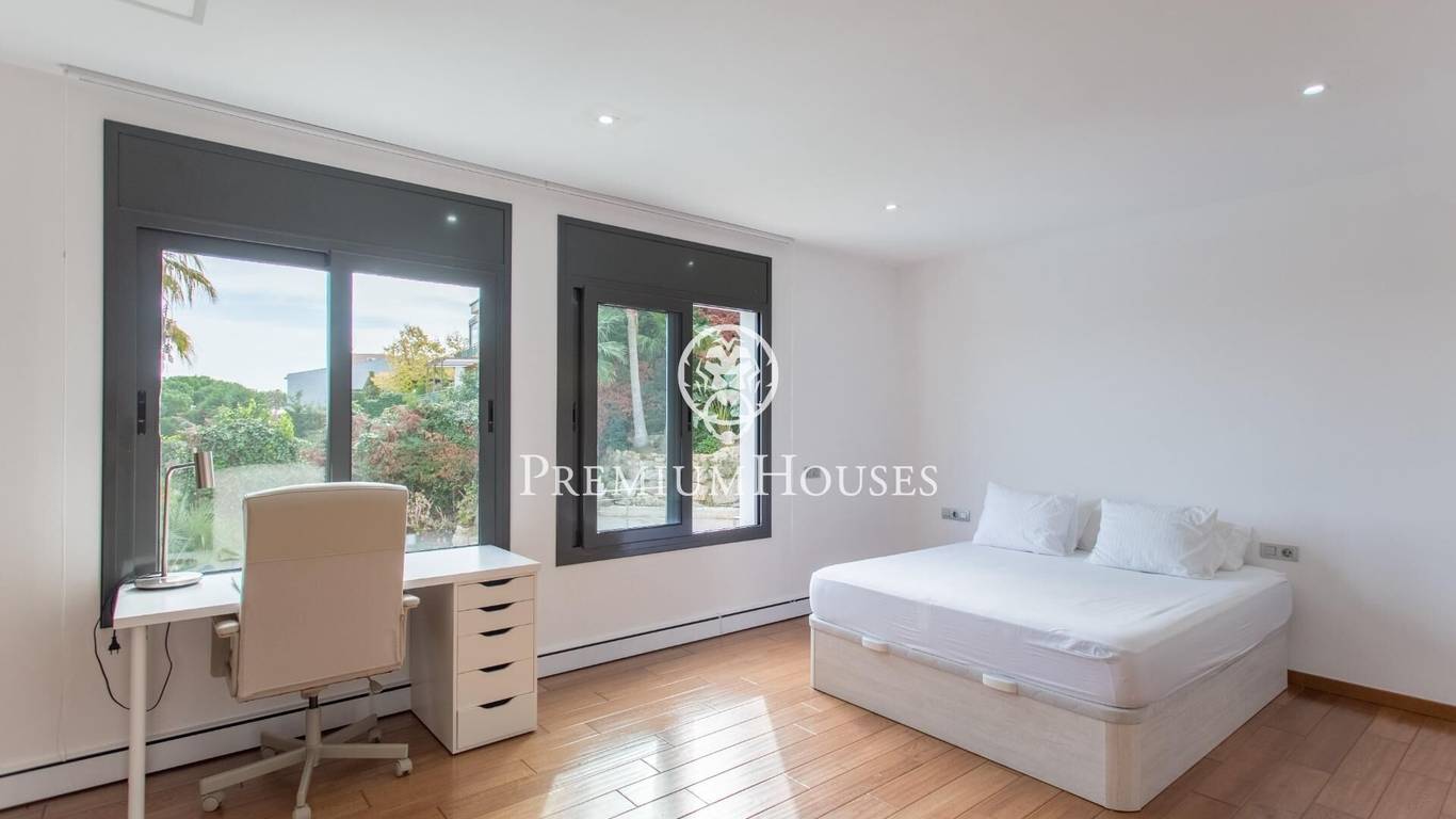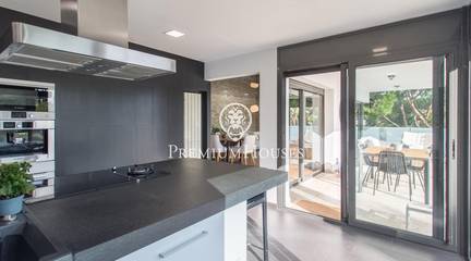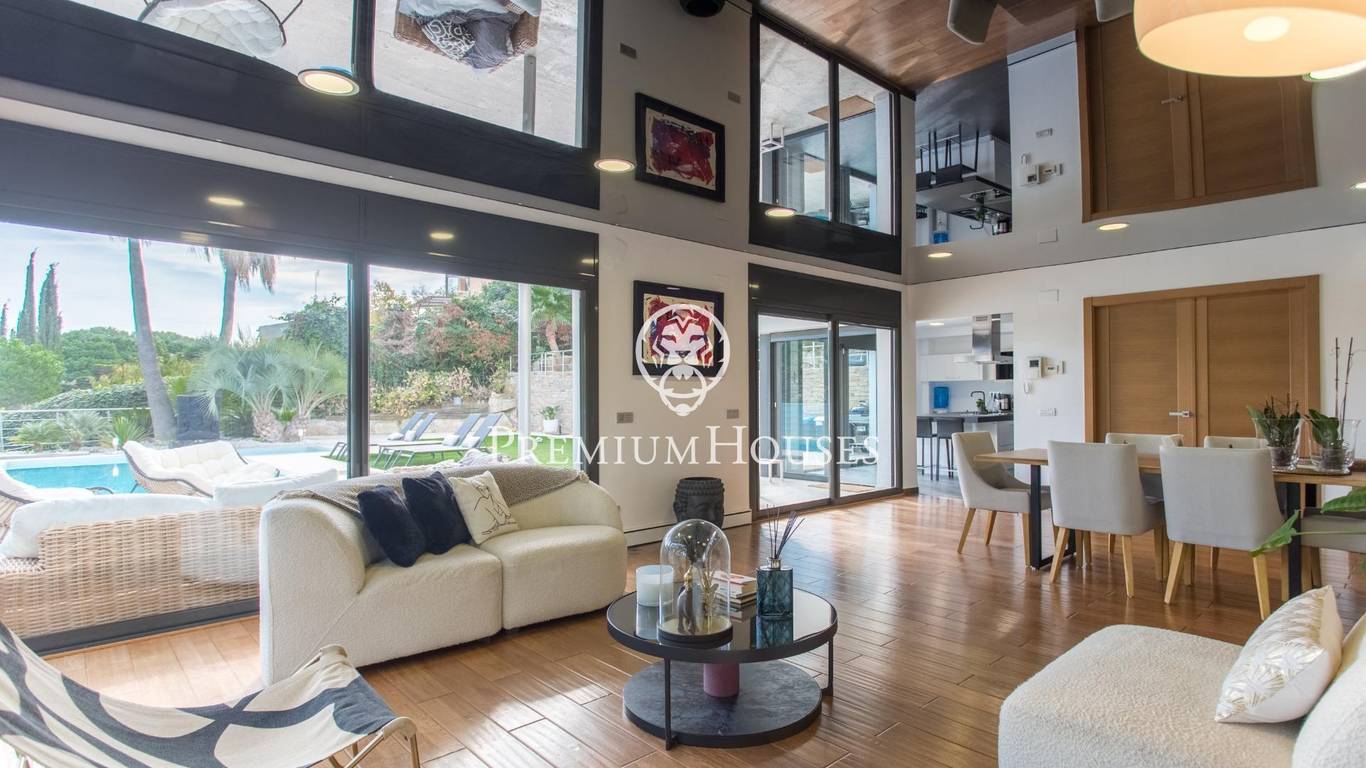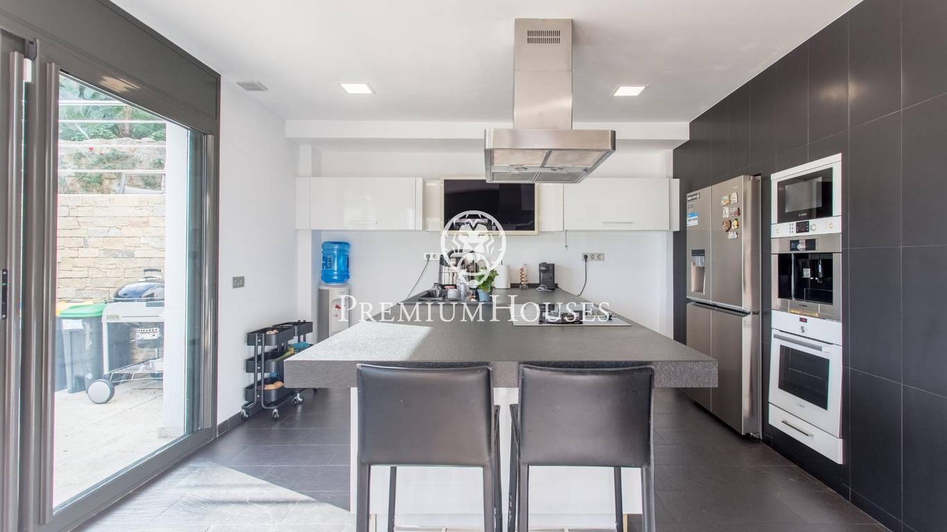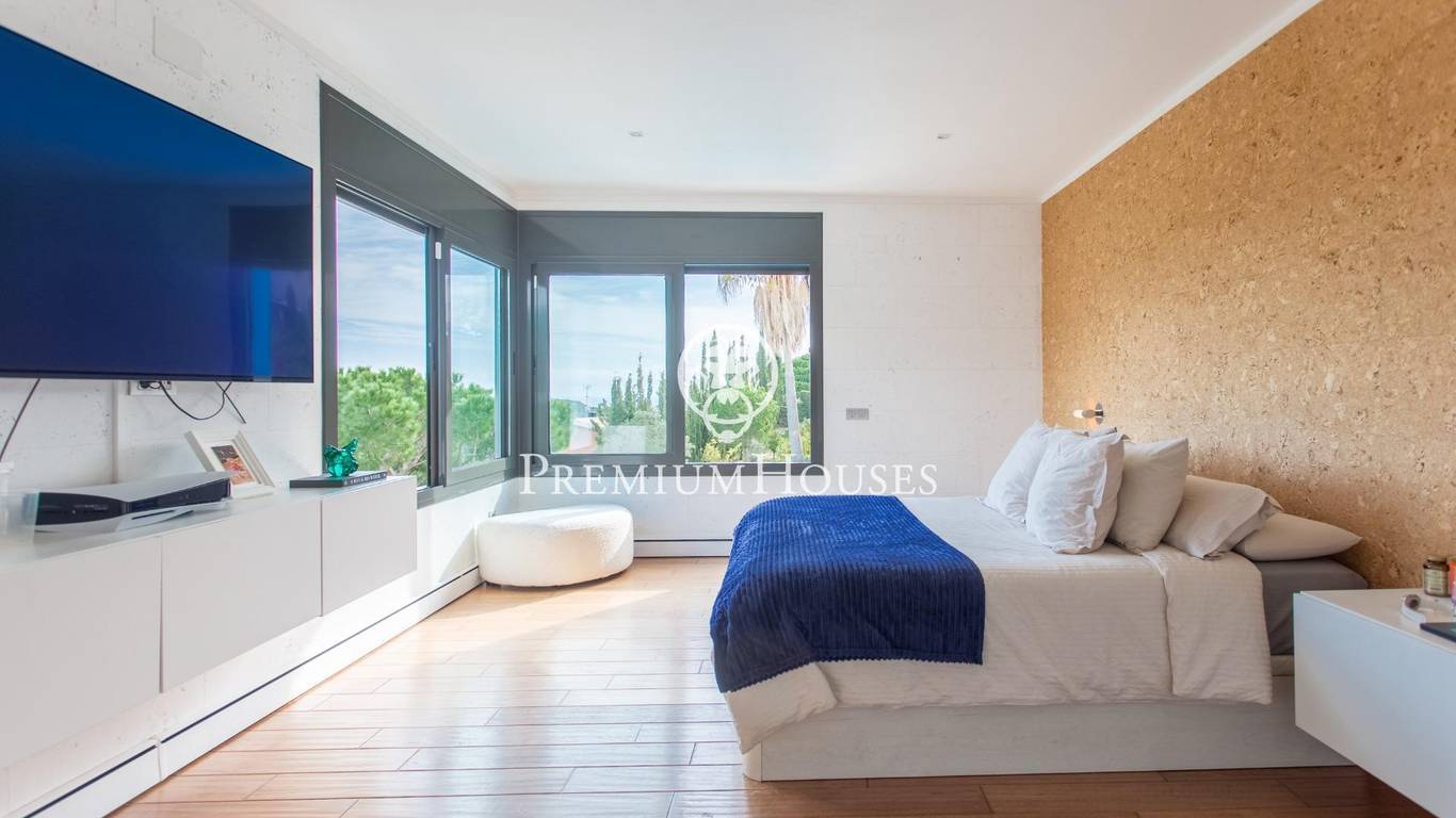 We present, in exclusive, a spectacular luxury house located in the prestigious urbanization of Rocaferrera, Sant Andreu de Llavaneres. This property, with its avant-garde design and cubist structure, is a modern architectural jewel that stands out for its minimalist style and elegance. As you enter the property, an automatic gate opens up to allow you to comfortably park up to two cars in a covered parking area, which connects directly to the house. The main entrance, through an impressive gate of unique design, leads into a spacious hallway that connects to a bright living room, which extends onto a terrace with artificial grass, ideal for enjoying the sun and the outdoors.From the main living room, an elegant staircase leads to a second living room on the upper floor, which offers access to an uncovered terrace with panoramic views of the Mediterranean Sea, creating a perfect setting for relaxing and contemplating the scenery.In the night area, designed with maximum security and privacy in mind, you will find a security door that gives access to three bedrooms and two bathrooms. The master suite, with private bathroom and sea views, stands out for its comfort and style. The other two bedrooms, overlooking the pool, share a full bathroom. The entire sleeping area has underfloor heating through the wall edge, providing a warm and cosy atmosphere.On the ground floor, via a staircase from the entrance hall, you will find the social area of the house. Here, you will find a spacious and modern open-plan kitchen, fully equipped with state-of-the-art appliances. Next to it, you will find the dining room and an additional cosy lounge, ideal for family gatherings. This area connects directly to the outdoor terrace and swimming pool, offering a space for leisure and relaxation surrounded by elegance and comfort.In addition, the house has a laundry room and a guest toilet on this floor. Don't miss the opportunity to live in one of the best areas of the Maresme, in a house that combines luxury, comfort and modern design.