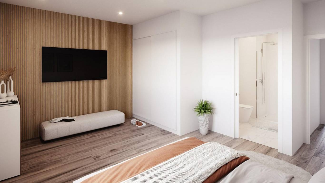 The properties are available in a ground floor model with front and rear terrace/garden and on the first floor with terrace and private solarium.