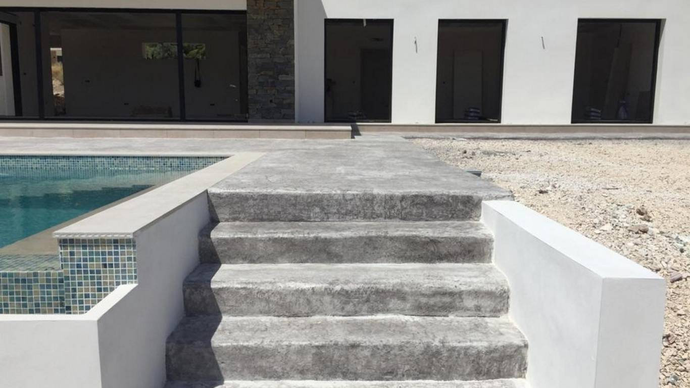 Private swimming pool 4x8 meters with a concrete press sunbathing terrace to connect the house with the pool.