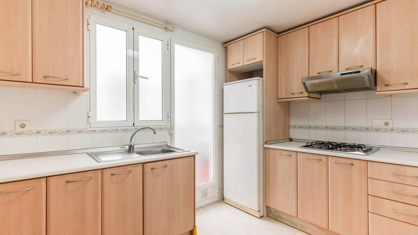 Desde la entrada a la vivienda se distribuye a un lado la cocina, con una galería contigua para electrodomésticos y útiles de limpieza y al otro lado el gran salón que posee este piso, con la terraza a continuación para disfrutar de amaneceres y grandes momentos familiares o con amigos.