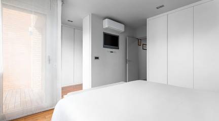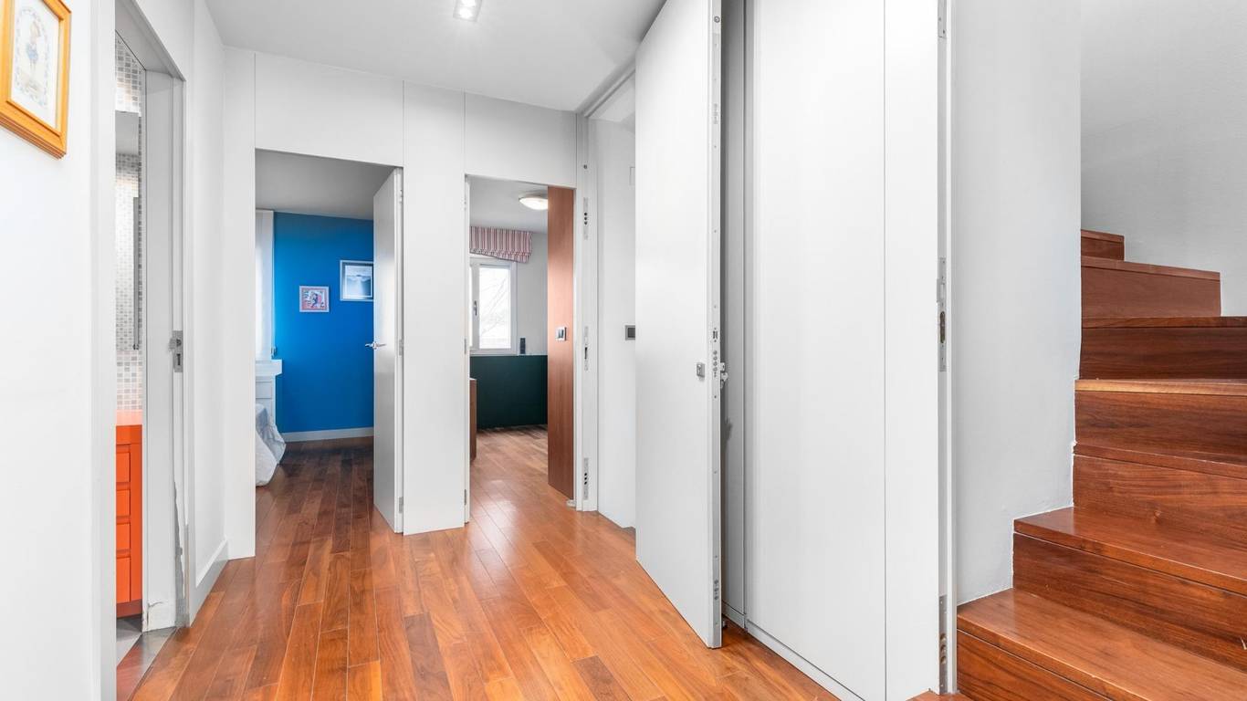 Planta primera: Distribuidor de forma cuadrada con armario empotrado. accedemos a este espacio para dar paso a la zona de noche de la vivienda compuesta de 3 habitaciones 1 habitación Individual, 1 habitación doble, 1 baño completo, 1 dormitorio principal suite con vestidor con luz natural y baño privado, 1 terraza.