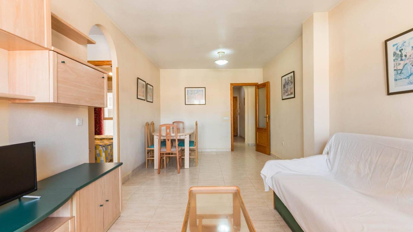 Desde la entrada a la vivienda se distribuye a un lado la cocina, con una galería contigua para electrodomésticos y útiles de limpieza y al otro lado el gran salón que posee este piso, con la terraza a continuación para disfrutar de amaneceres y grandes momentos familiares o con amigos.