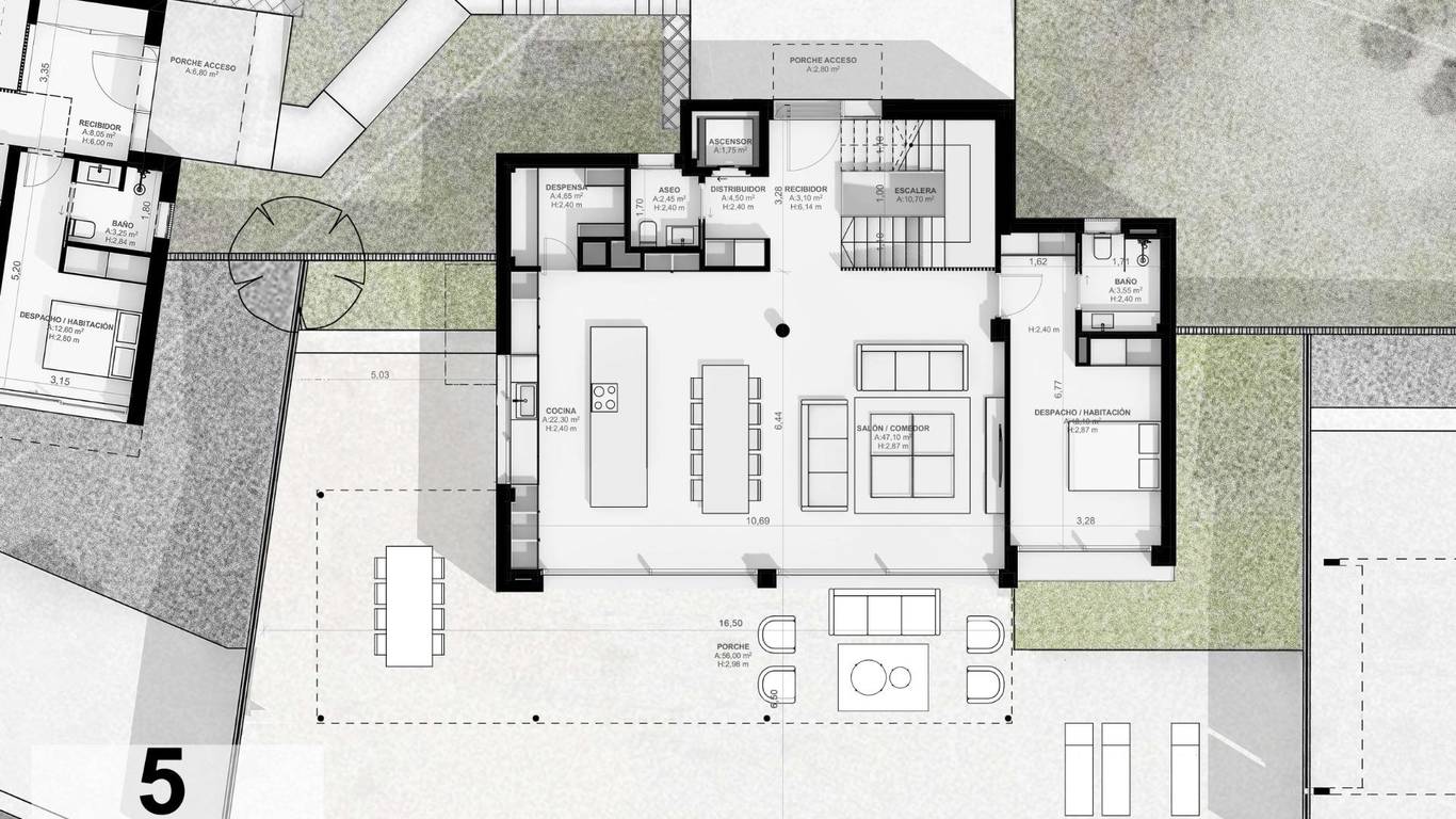 Planning and Design: Central air conditioning, Air Conditioning, Alarm System, Built-in wardrobe, Lift, Safe, Heating, Storeroom, Laundry room, Reinforced door, Sauna, New building