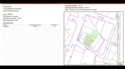 Banks, ATMs: Caixabank - 230m; Caixa Turís - 9120m Supermarkets: Consum - 270m; Masymas - 680m; Mercadona - 3000m; Charter - 3540m; Lidl - 7250m Shops, pharmacies: A. Elorriaga - 190m; Ángel Gema - 190m; María Rocío Castillo Garzón - 280m; BikeSport Chiva - 290m; Talleres Stop - 670m; Taller Juan Sanchez - 1640m Cafes, restaurants: Telepizza - 190m; Tapasbar Los Patros - 290m; El Canario - 320m; American Pizza Mario - 390m; La'Orza de Angel - 550m; Arrocería Las Bairetas - 1170m Education: Colegio Público Doctor Corachán - 80m; Escuela de adultos Chiva - 270m; Colegio Público la Murta - 420m; Instituto Educación Secundaria Marjana - 520m; CP Martínez Cullá - 730m