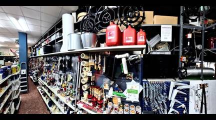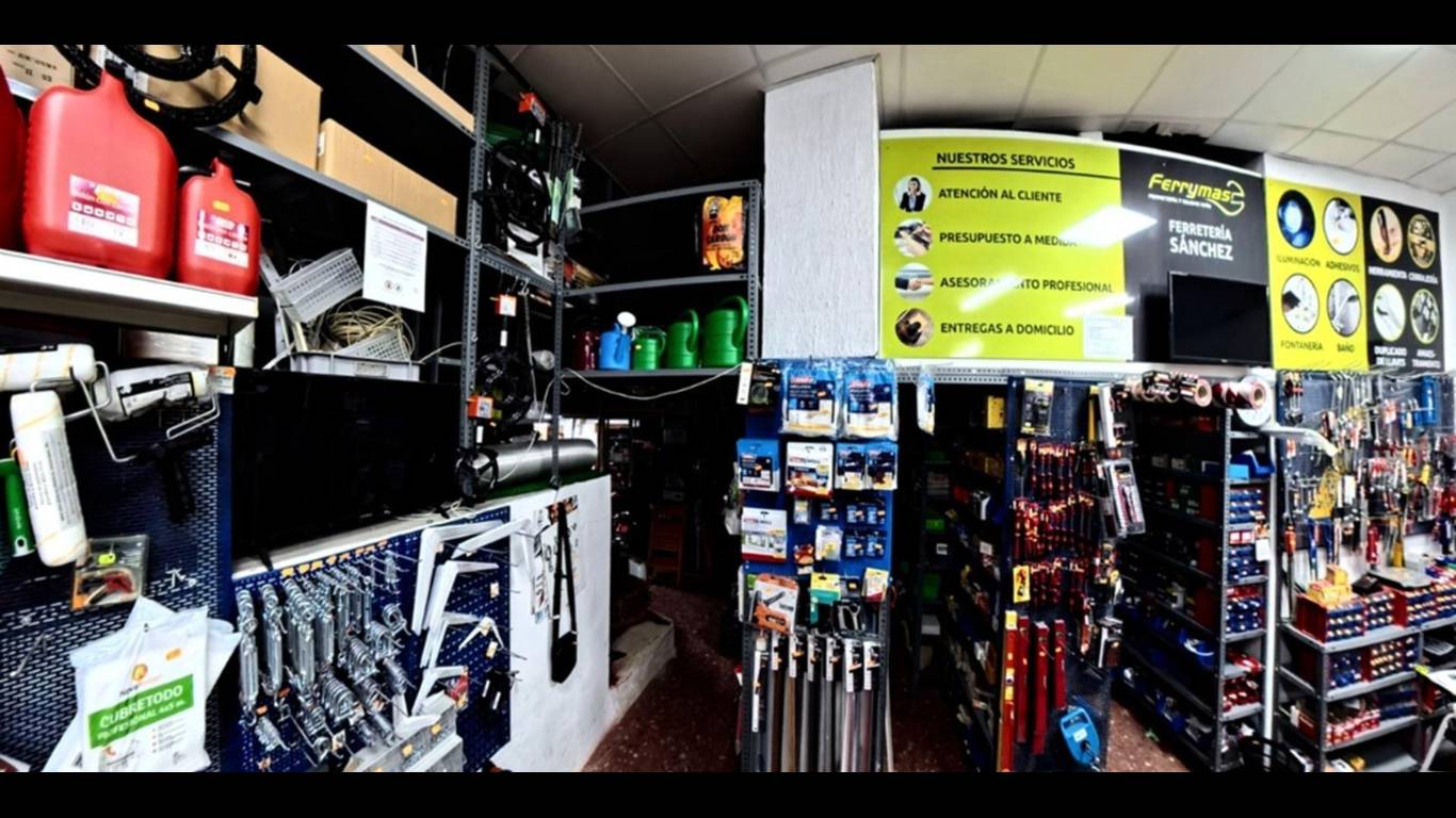 Secciones Especializadas: El negocio destaca en Cerrajería, Menaje profesional (marcas como Arcos), Fontanería, Electricidad y Pinturas.