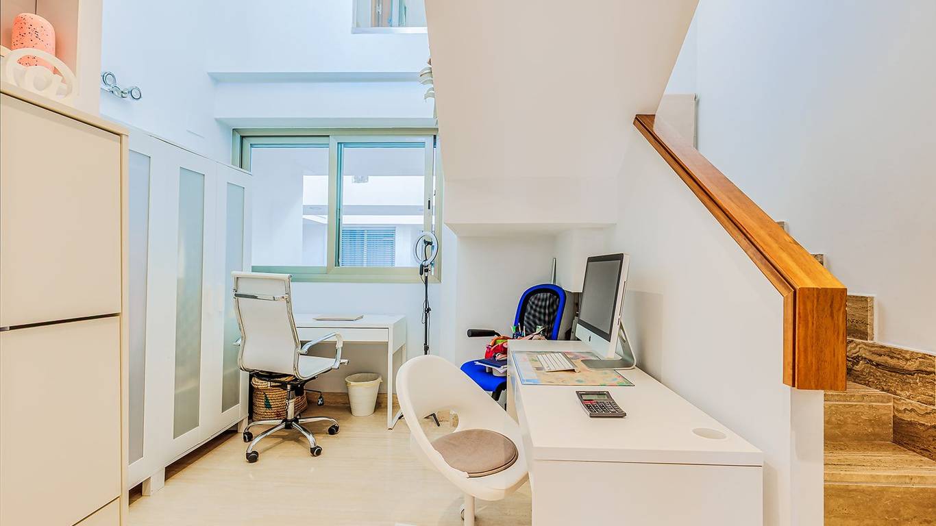 Travertine marble floors, adjustable electric shutters, and the duplex layoutwith the possibility of installing a liftcreate a perfect balance between elegance and functionality.