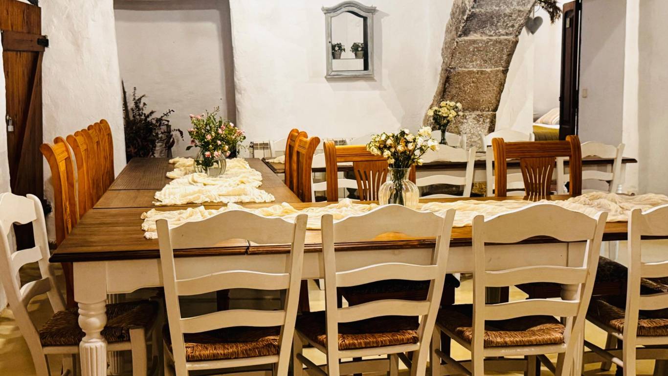 La Finca construida en el Siglo XII, consta de 8 dormitorios, con una construcción principal 687 m2, 6 baños, 2 salas de estar, zona de barbacoa, piscina, vistas panorámicas, una sala para eventos de aproximadamente 120 m2, capacidad máxima de 24 personas.