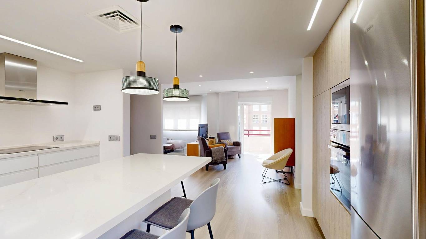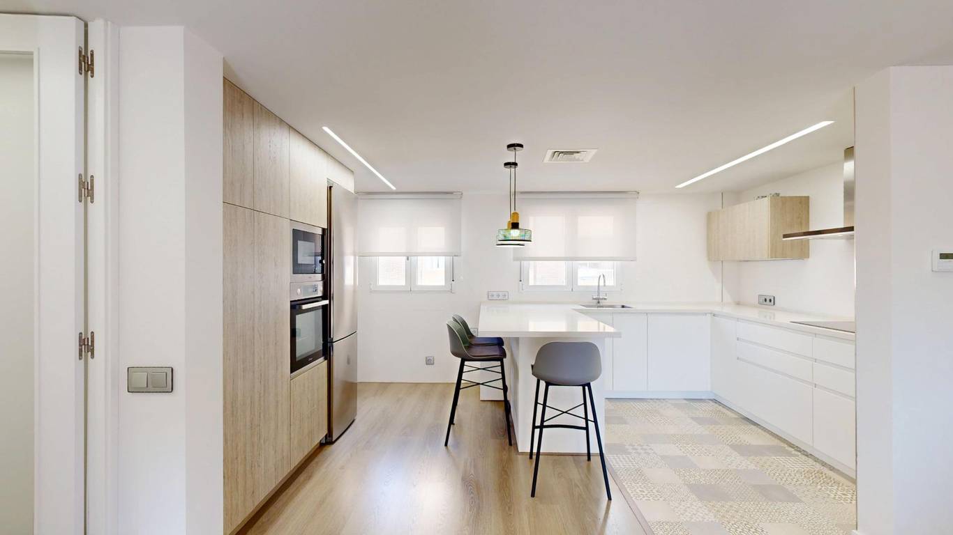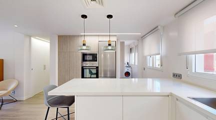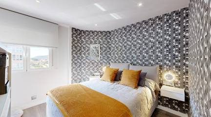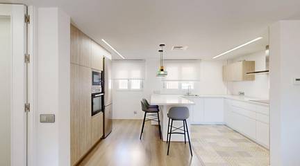 LEE CON ATENCIÓN: 'PRECIOSO PISO REFORMADO EN ZONA ALAMEDA CON PLAZA DE GARAJE'. Este espectacular piso recientemente reformado se encuentra a tan solo 5 minutos del Corte Inglés y ofrece tres dormitorios, uno de ellos convertido en vestidor. Dispone de un amplio cuarto de baño completo equipado con plato de ducha y sanitarios de marcas reconocidas que garantizan la mejor calidad. Sus suelos son de gres elegante, las puertas están lacadas en blanco y las paredes presentan acabados lisos algunas estancias decoradas con papel pintado aportan un toque sofisticado. La cocina está diseñada por una marca prestigiosa e incluye barra americana junto a encimera de silestone y electrodomésticos integrados para mayor comodidad. Además, cuenta con un balcón orientado al sur desde donde disfrutarás impresionantes vistas a la montaña. Para tu confort adicional, el hogar dispone también aire acondicionado central con bomba calor, alarma anti-robo y puerta acorazada para máxima seguridad. Y como valor añadido podrás beneficiarte igualmente de una amplia plaza garaje donde aparcar tu vehiculo sin complicaciones.
