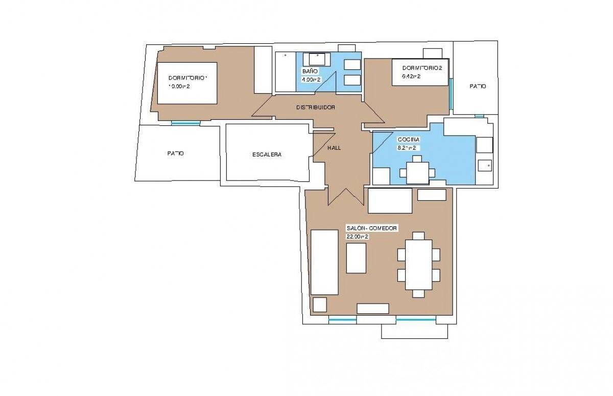 La casa es muy luminosa ya que el salón tiene orientación sur. La cocina es de tipo independiente y tiene espacio para colocar una mesa para poder desayunar en la cocina. Además, cuenta con un cuarto de baño completo y dos dormitorios uno doble y otro individual que dan a dos patios interiores. La vivienda dispone de aire acondicionado frío- calor con un Split en el salón y otro en el dormitorio principal.