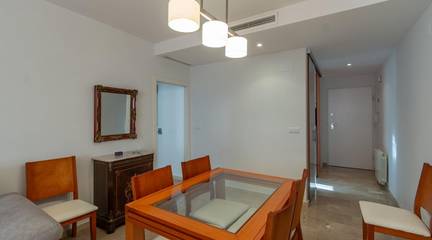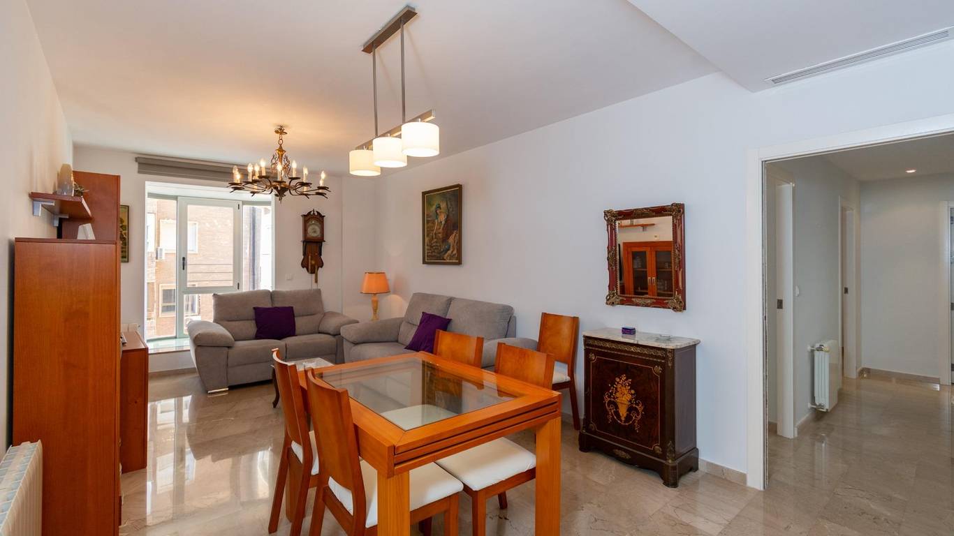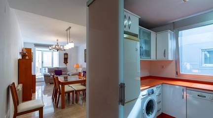 La propiedad, lista para entrar a vivir y sin necesidad de reforma, destaca por su amplitud, luminosidad y excelente distribución. Dispone de tres dormitorios con armarios empotrados, siendo el principal un espacio especialmente confortable con baño en suite. En total, la vivienda cuenta con dos baños completos. El amplio salón, con grandes ventanales, se convierte en el corazón del hogar, aportando luz y amplitud, y conecta con balcones acristalados que también están presentes en dos de los dormitorios, creando estancias acogedoras y llenas de encanto. La cocina, funcional y bien integrada, está pensada para el día a día, completando una distribución cómoda y equilibrada. Además, el precio incluye plaza de garaje, un valor añadido fundamental en esta ubicación.
