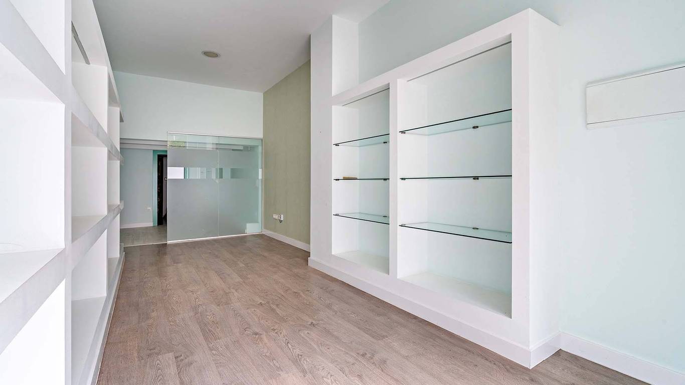 Superficie: 43 m en planta principal diáfana 18 m aproximadamente de altillo ideal para almacén o zona de archivo, Elegante suelo imitación madera de alta resistencia y durabilidad.