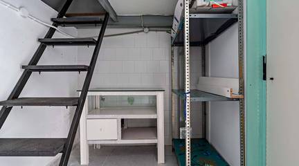 Mobiliario Funcional: Equipado con estanterías hechas a medida que optimizan el espacio y un aseo moderno e impecable.