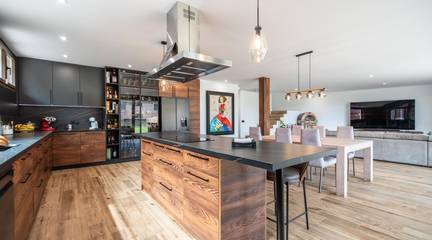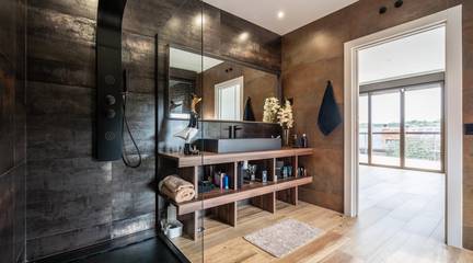 The daytime area stands out for its impressive open-plan kitchen connected to the living-dining room, creating a modern, elegant, and very bright space with direct access to a spectacular plot designed to enjoy the outdoors all year round. In the night area, the master bedroom offers a true relaxation space, with an en-suite bathroom and direct access to a large terrace with stunning views.