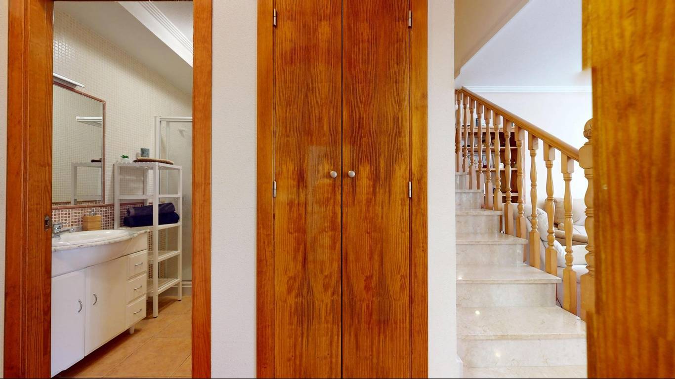 En la primera planta se ubican dos dormitorios, ambos con salida a amplias terrazas, lo que garantiza luminosidad y ventilación natural durante todo el día. En esta planta también encontramos un baño completo. Cabe destacar que toda la vivienda es exterior, lo que aporta una gran sensación de amplitud y bienestar.
