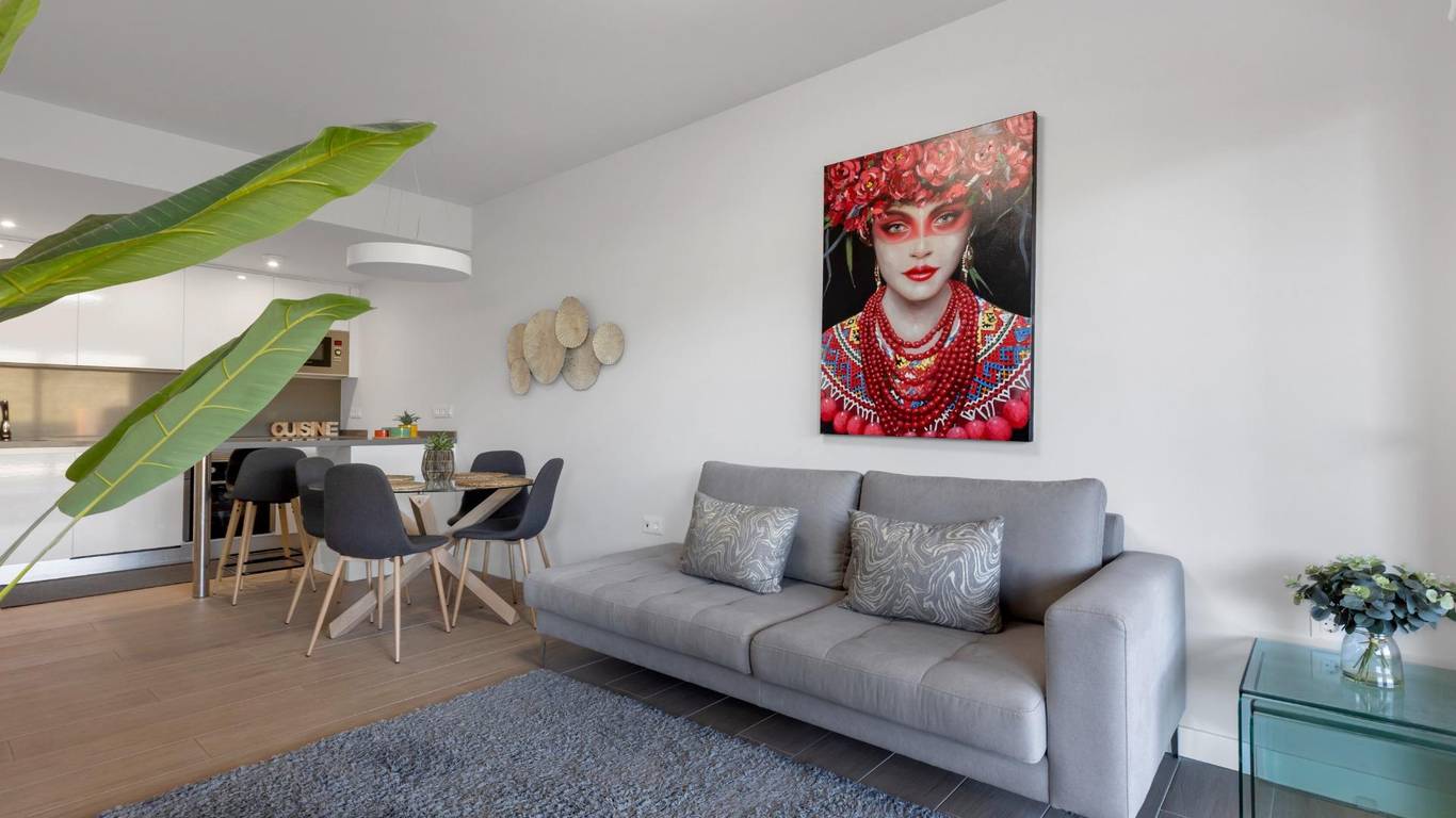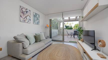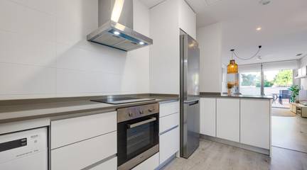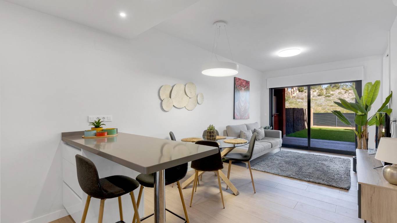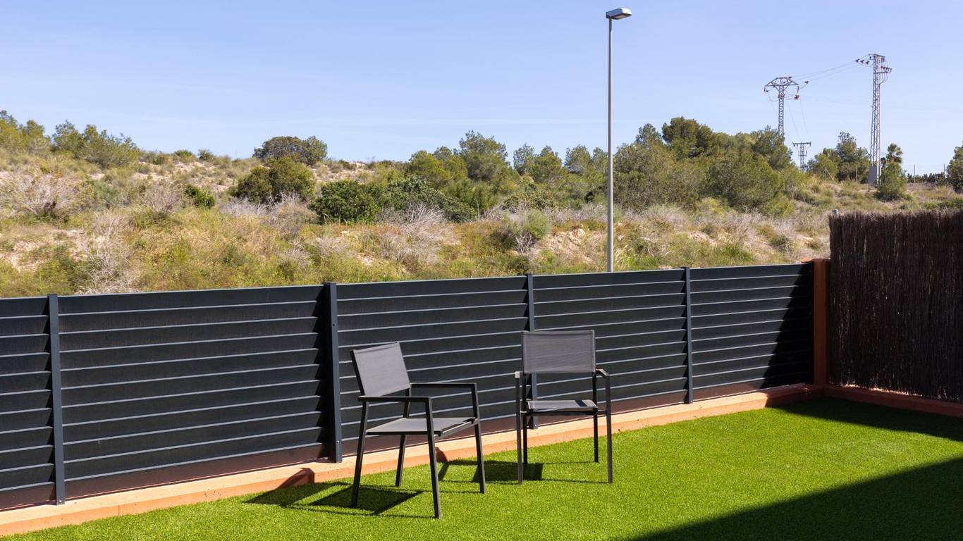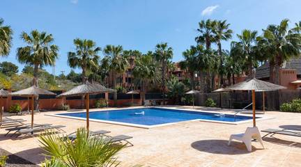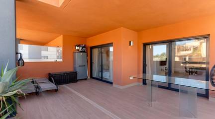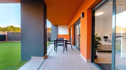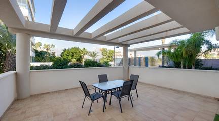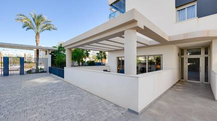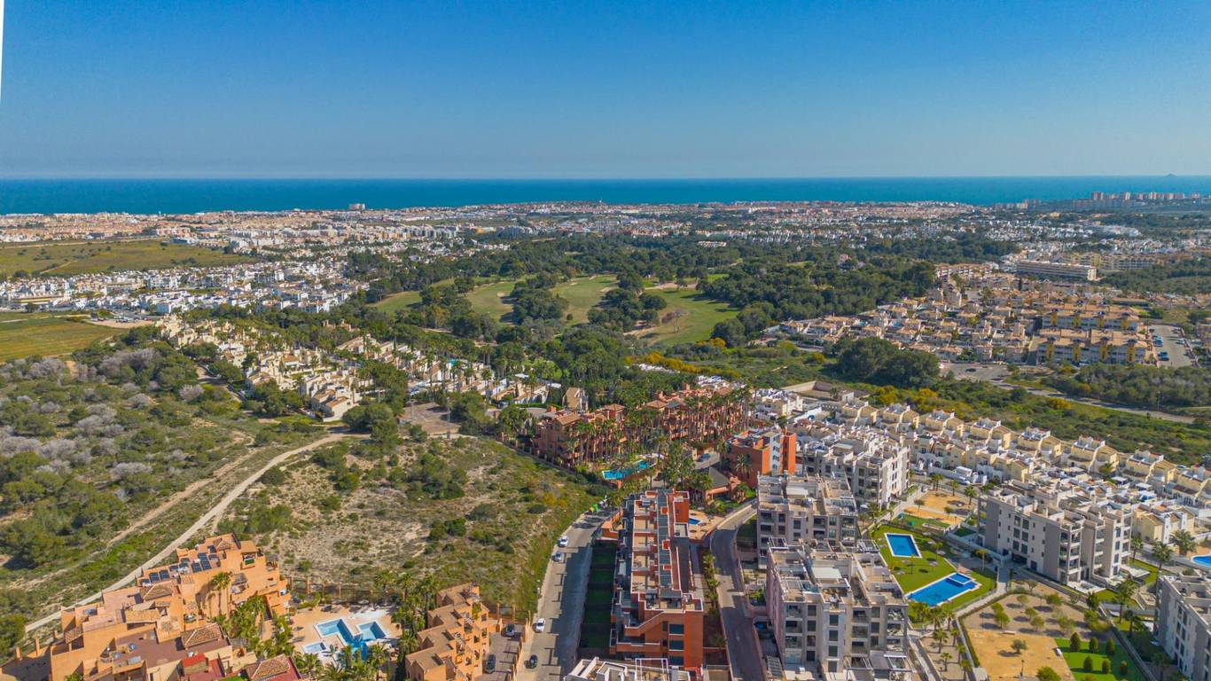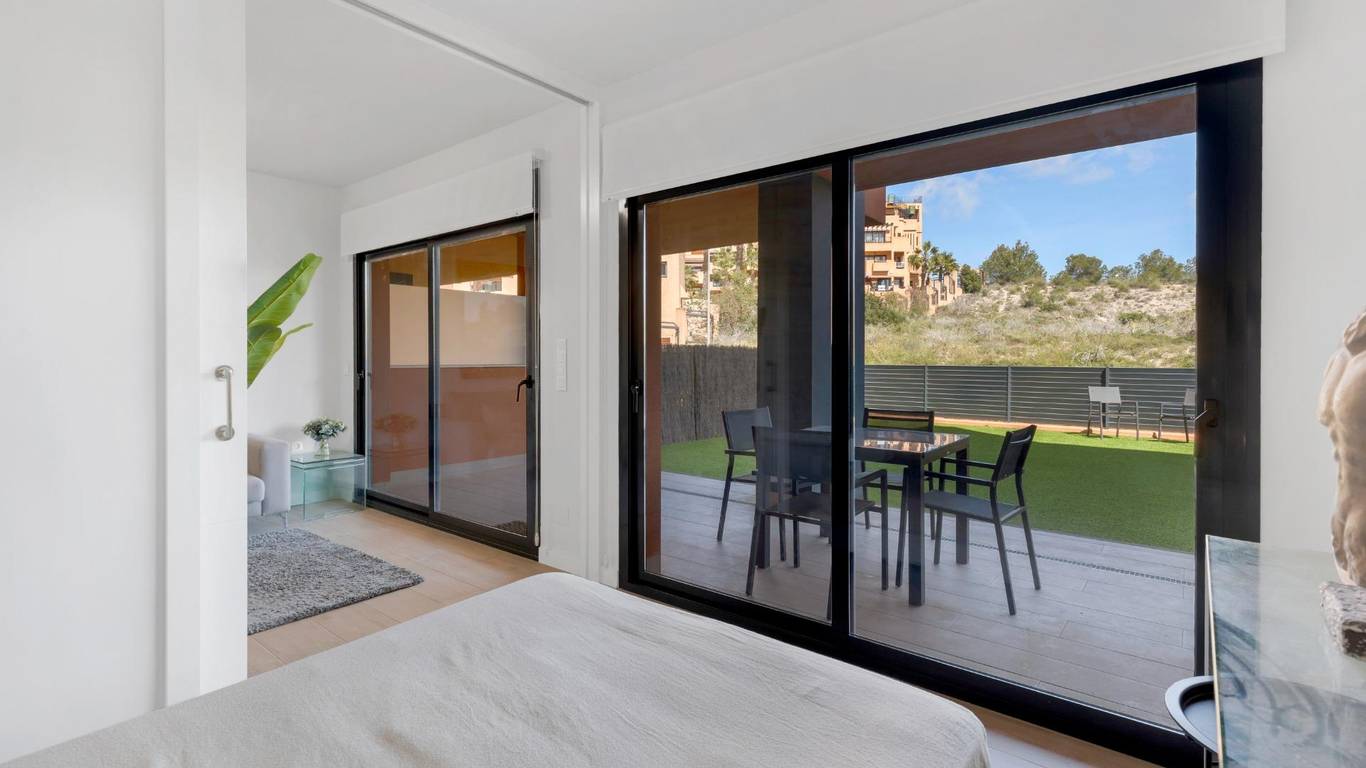 Discover this exceptional ground-floor apartment located in the prestigious Palapagolf II Residential in Orihuela Costa. Combining spacious interiors, generous outdoor areas, and an unbeatable location, this property is perfect for those seeking a serene Mediterranean lifestyle.Set just a few meters from the renowned Villamartín Golf, the home offers immediate access to one of the most sought-after golf courses in the region. Everyday convenience is guaranteed, with a wide range of shops, restaurants, and services nearby, and the famous La Zenia Boulevard only 10 minutes away by car. The stunning Playa de La Zenia is within 5 km, offering sun, sand, and sea just a short drive from your door. Property Features2 spacious bedrooms with direct access to the front garden2 fully equipped bathrooms, perfect for family or guestsGenerous private front plot facing the living room and bedrooms, ideal for outdoor dining, relaxing, or enjoying the Mediterranean sunAdditional terrace at the entrance, perfect as a lounge or welcome areaDual orientation:Main terrace facing East, enjoying the morning sunEntrance terrace facing West, perfect for sunsetsCommunal swimming pool for relaxation and recreationGarage included, providing security and convenienceFully furnished and equipped, move-in ready Lifestyle BenefitsBuilt in 2022, the complex is meticulously maintained, offering a modern, well-kept appearance that feels almost brand-new. The residence provides a peaceful and secure environment, with beautifully landscaped communal areas and a strong sense of community.This property is an ideal choice for permanent residence, a second home, or a long-term investment. Enjoy the tranquility of a prestigious golf community, the convenience of nearby shopping and services, and the sun-soaked Mediterranean lifestyle, all just minutes from the coast.The price of the property does not include notary and property registration fees (which are subject to tariffs and vary depending on the deed price), nor taxes (which in the Valencian Community vary depending on the price of the property and the personal characteristics of the buyer).