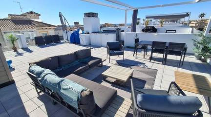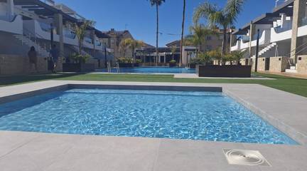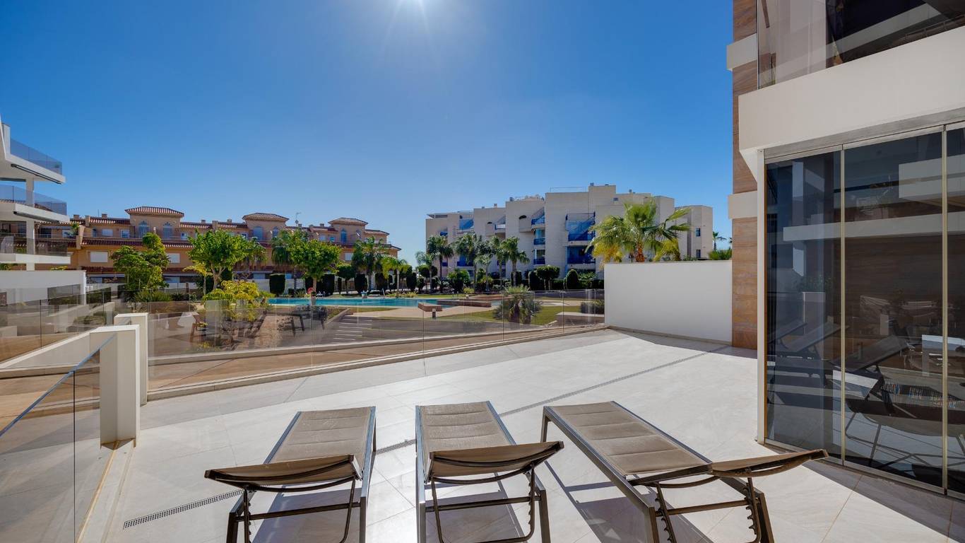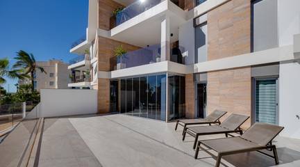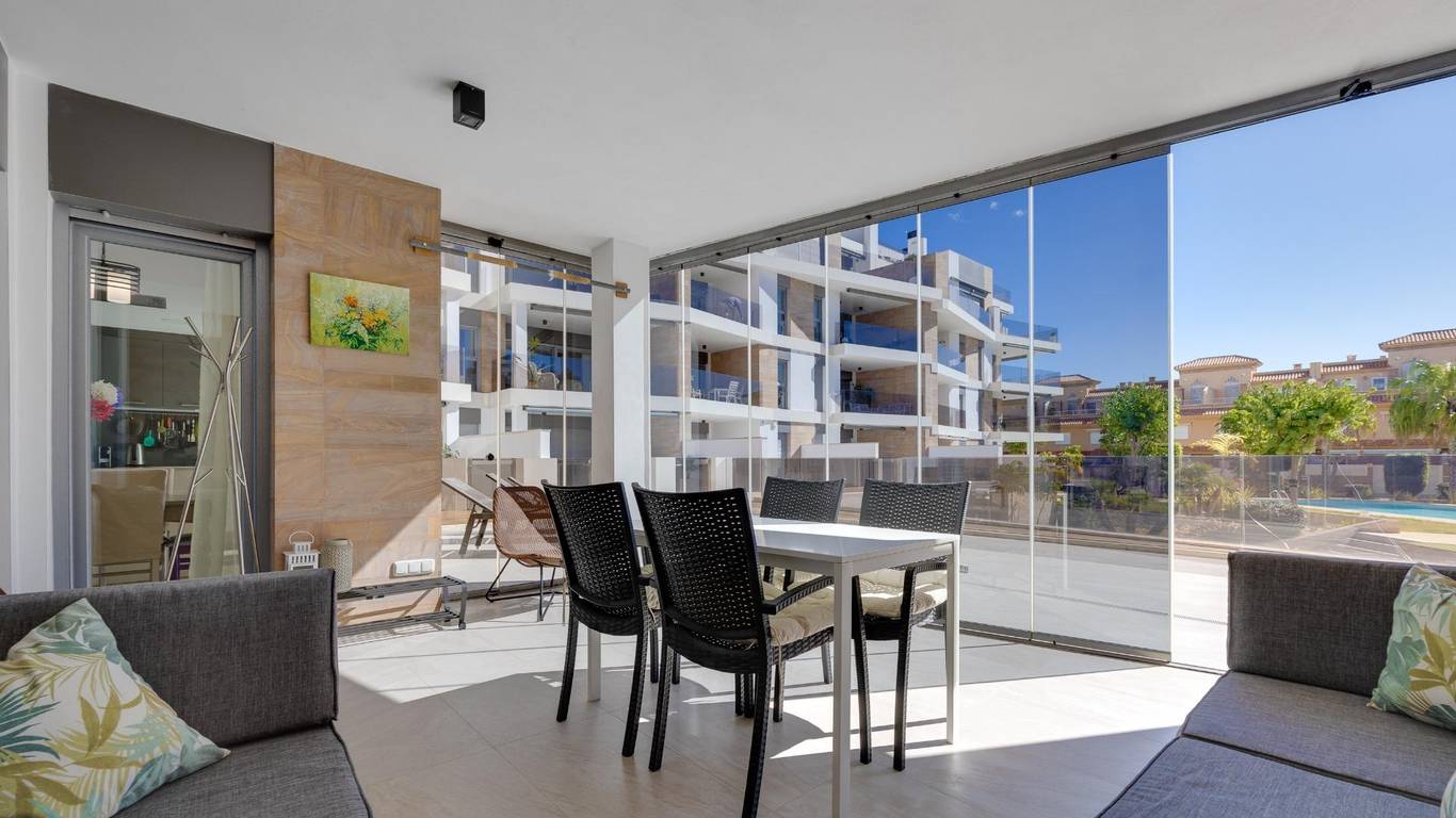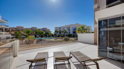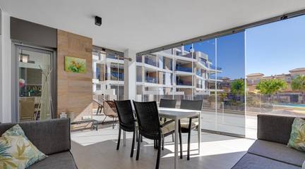 We present this high-end property in one of the most prestigious areas of Orihuela Costa, in Campoamor.This ground-floor apartment boasts a spacious private terrace, ideal for enjoying the Mediterranean lifestyle in a privileged setting.The bright and airy property, with three exposures, features three bedrooms, the master with an en-suite bathroom and private terrace, a second bathroom, an open-plan kitchen, a living room with access to a glazed porch that can be enjoyed year-round, and a superb terrace with unobstructed views of the swimming pool and surrounding green areas. It also includes central air conditioning/heating, a utility room, and is being sold furnished. It is perfect for those who want comfort and luxury combined, with no stairs and everything within walking distance.Its location by the sea, in one of the finest luxury developments on the Costa Blanca, with a communal swimming pool, heated pool and gym, parking space, and storage room, makes this property an excellent premium investment, offering maximum comfort and added value. Undoubtedly one of the best areas on the Mediterranean, with all amenities, restaurants, supermarkets, a weekly market on Thursdays, and nearby golf courses, and just minutes from Torrevieja and shopping centers like Zenia Boulevard. A unique opportunity to live or invest right by the sea.Contact us for more information or to arrange a visit we'd be delighted to assist you.TAXES AND FEES NOT INCLUDED. Legal notice: The information provided is for informational purposes only, is not legally binding, and may contain errors.