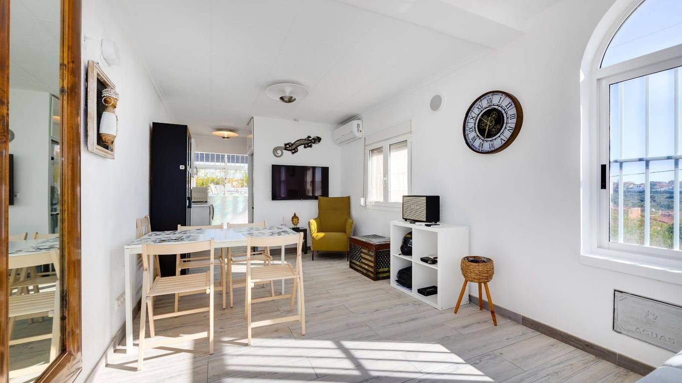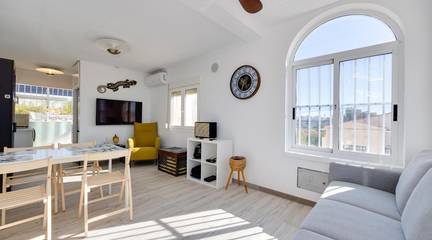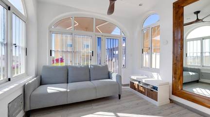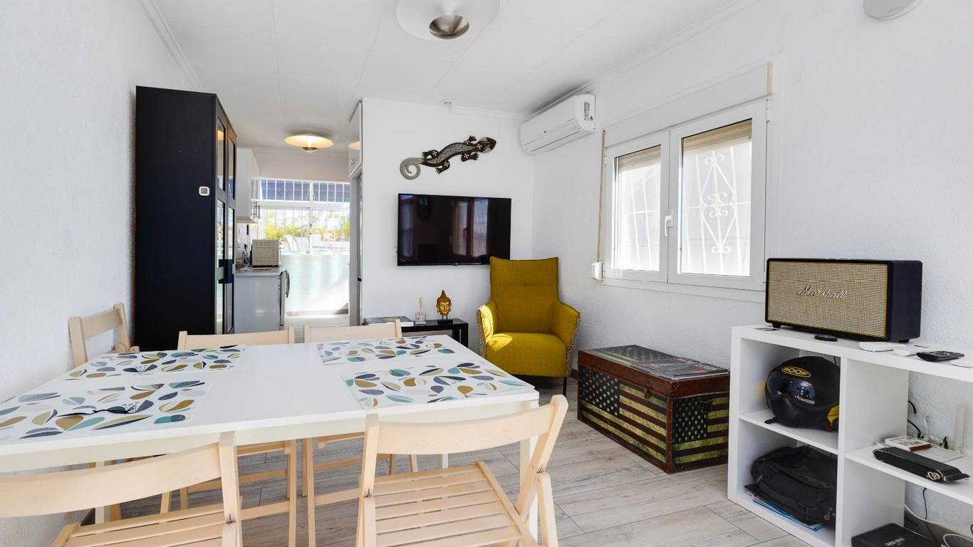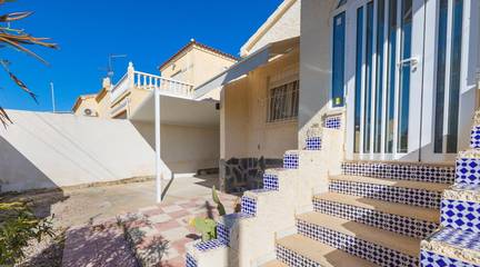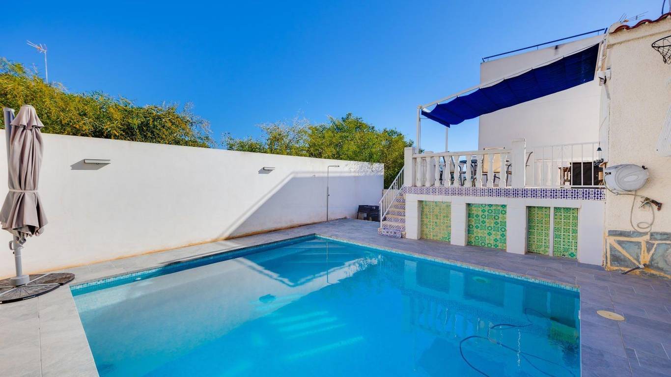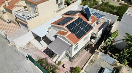 Bonita casa independiente con piscina privada situada en la tranquila y demandada urbanización La Marina. La vivienda cuenta con 51 m construidos sobre una amplia parcela de 257 m, ofreciendo privacidad, comodidad y espacios exteriores ideales para disfrutar del clima mediterráneo.Se trata de un modelo Rosa ampliado, que dispone de 2 dormitorios y 1 baño, y que ha sido recientemente reformado, presentando un aspecto moderno, acogedor y listo para entrar a vivir.Uno de sus grandes atractivos es su sistema de energía solar, compuesto por 14 paneles solares con batería física de 7,5 kW, lo que proporciona un estilo de vida más eficiente, sostenible y con un importante ahorro energético.En el exterior encontramos una fantástica piscina privada, perfecta para disfrutar durante todo el año, además de una gran zona de almacenamiento bajo la terraza, muy práctica para guardar herramientas, bicicletas o mobiliario exterior.La propiedad está muy bien ubicada, cerca de todas las comodidades de la urbanización: centro médico, comercios, bares, restaurantes y supermercados, y a tan solo 4 km de las hermosas playas de la zona.Una excelente oportunidad tanto como vivienda habitual, casa de vacaciones o inversión en una de las zonas más populares de la Costa Blanca.
