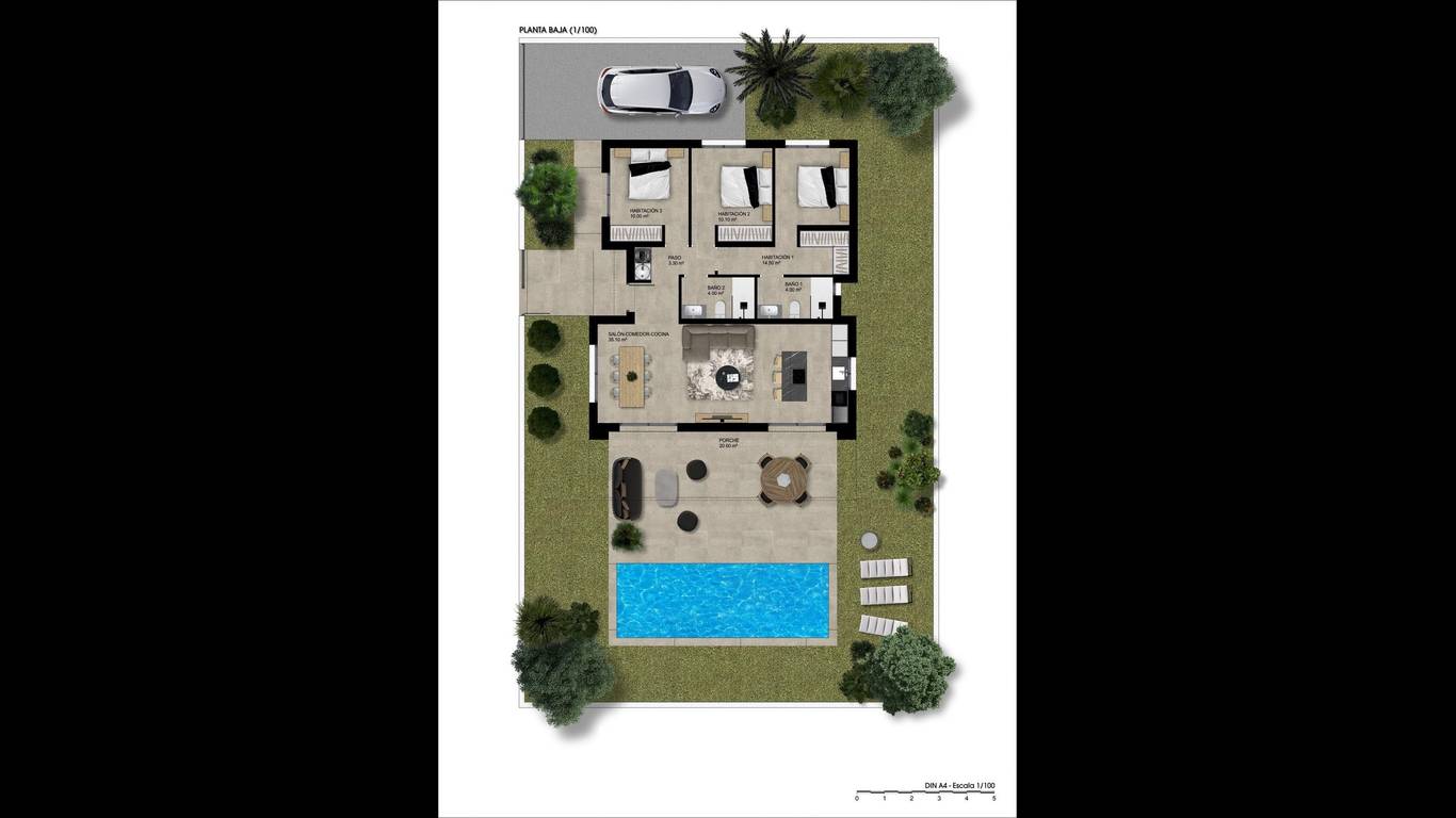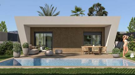 NEWLY BUILT VILLAS WITH POOL IN HONDON DE LAS NIEVESDiscover the elegance and comfort of these beautiful detached villas ranging from 108 to 128 m2, designed to offer you an exceptional lifestyle, all on one floor. Enjoy the privacy offered by this villa, where you can relax in your own garden, create an oasis of tranquillity, or cool off in your private pool to enjoy the warm summer days.The property is distributed into two large areas:Day area: Here we find a spacious living-dining room with an open-plan kitchen (kitchen furniture included) that connects to the large modern porch through two large windows, leading to the landscaped outdoor area and the pool. As an extra space, there is a laundry area strategically located in the layout of the house, which is easily accessible from anywhere in the property.Rest area: In this area there are 3 bedrooms. The master bedroom has a large dressing room and en-suite bathroom. There is also a second bathroom for the other bedrooms and the rest of the house.Located in a quiet, residential area, this villa allows you to enjoy the privacy and tranquillity you desire, while being within easy reach of amenities, shops, supermarkets and restaurants. It is the perfect balance between peaceful seclusion and the comforts of modern living.In this development in Hondón de las Nieves, every day is an opportunity to connect with the world.Hondón de las Nieves is a municipality in the Valencian Community, Spain.It is located in the south-west of the province of Alicante, in the Vinalopó Medio region.The beaches and Alicante airport are very close by, only 30 minutes away by car.