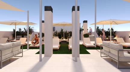 Modern New Build Apartments in the Center of San Miguel de SalinasContemporary Living in a Healthy Mediterranean EnvironmentLocated in the charming town of San Miguel de Salinas, just 10 km from the Mediterranean Sea, this new residential development offers the perfect balance between modern comfort and natural surroundings. The area is well known for its nearby salt lakes and exceptional microclimate, considered one of the healthiest in Europe. This peaceful yet vibrant town allows residents to enjoy the authentic Mediterranean lifestyle while being within walking distance of shops, restaurants, supermarkets and all essential services.San Miguel de Salinas sits slightly inland on the Costa Blanca South, offering open views, fresh air and easy access to beaches, golf courses and shopping areas.Stylish Apartments Designed for Comfort and EfficiencyThe project consists of two modern buildings separated by a landscaped communal garden area. A total of 56 contemporary apartments are available with 1, 2 or 3 bedrooms, each featuring a private terrace. Every home has been designed with comfort, aesthetics and energy efficiency in mind, using high quality materials and modern insulation systems.Each apartment includes:Armored entrance doorBathrooms with vanity unitsPre installation of ducted air conditioningEnergy certificate rating AThe layout and orientation of the homes ensure natural light throughout the day, creating bright and welcoming interiors ideal for both permanent living and holiday use.Exceptional Communal Areas for Relaxation and Social LifeThe ground floor communal space is designed as the social heart of the development, surrounded by landscaped gardens, seating areas, bicycle parking and a childrens playground. It is an ideal meeting point for residents of all ages.On the rooftop, an impressive 350 m2 leisure area awaits. This space includes a 70 m2 swimming pool with a separate childrens splash area, pergolas, sun loungers and shaded areas, allowing residents to relax while enjoying panoramic views. The rooftop is easily accessible by one of the three lifts and includes sanitary facilities for added comfort.Excellent Location Close to Key Points of InterestMediterranean beaches 10 kmZenia Boulevard Shopping Center 9 kmVillamartin Golf 6 kmLas Colinas Golf 8 kmTorrevieja Marina 12 kmAlicante Airport 60 kmMurcia Corvera Airport 55 kmA Smart Investment in Costa Blanca SouthThis residential complex combines modern architecture, quality finishes and a prime central location, making it an excellent choice for living, holiday enjoyment or rental investment.Contact us today for more information or to arrange a visit to these modern apartments in San Miguel de Salinas.