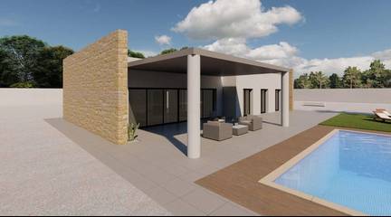 Modern newly built villa on a large rural plot near PinosoContemporary living in a peaceful rural settingDiscover this elegant newly built villa set on a large rural plot of over 10,000 m2 (of which around 3,000 m2 will be fenced) on the outskirts of Pinoso, Alicante. Designed for those seeking privacy, tranquillity and a close connection with nature, this modern home combines contemporary architecture with the charm of the Spanish countryside. Surrounded by vineyards, almond and olive groves, the property offers a serene lifestyle within easy driving distance of all local amenities.Spacious single-storey villa with private poolThe villa is laid out on one floor and has 3 bedrooms and 2 bathrooms, one of which is en suite.Outside, you can enjoy 2 covered terraces (one measuring 20m and the other 40m) and an 8x4 swimming pool, perfect for relaxing and having fun under the Mediterranean sun. The property also includes a parking area, a 10,000-litre water tank and motorised gate access for vehicles, all within a large rustic plot offering endless possibilities for gardening, leisure areas or simply enjoying the surrounding views.Modern features and quality finishesThis newly built villa is equipped with pre-installation for ducted air conditioning. The kitchen is fully equipped with appliances, offering a functional and stylish space for everyday living. The modern design, combined with quality materials, ensures a comfortable and low-maintenance home, ideal for permanent living or as a country retreat.Location near the town of PinosoThe property is located on the outskirts of the town of Pinoso, a charming inland village with less than 8,000 inhabitants. Known for its relaxed pace of life and authentic Spanish atmosphere, Pinoso offers a wide range of amenities, including bars, restaurants, shops, a 24-hour medical centre, dentists, primary and secondary schools, a theatre and a modern sports complex with outdoor swimming pools, tennis courts, football pitches and a gym.The centre of Pinoso is about 3 km away. The city of Alicante is about 55 km away, while the white sandy beaches of the Costa Blanca are about 50 km away. Alicante International Airport is about 60 km from the property. The region is also close to the border with Murcia, adding further connectivity and lifestyle options.An authentic Spanish lifestyle surrounded by natureLiving in Pinoso means enjoying a traditional rural lifestyle, with little traffic, open landscapes and a strong sense of community. In February, the surrounding countryside comes alive with almond trees in bloom, creating a spectacular natural spectacle.Your dream home in the countryside awaitsThis modern, newly built villa in Pinoso offers the perfect balance between contemporary comfort and the tranquillity of rural life. Contact us today for more information or to arrange a viewing and take the first step towards your new home in the Spanish countryside.