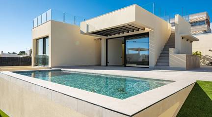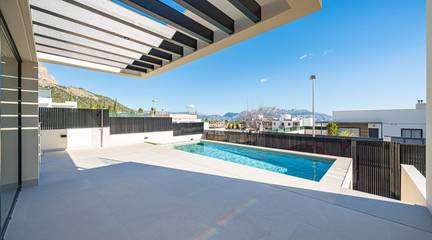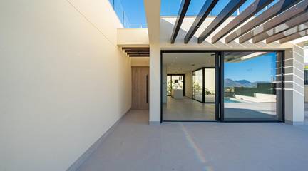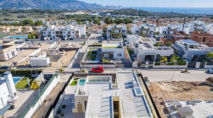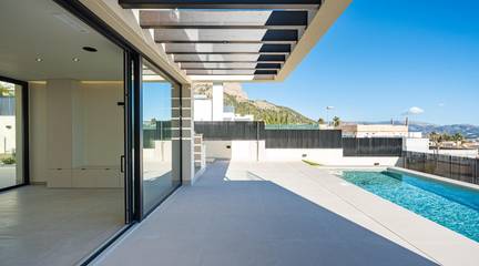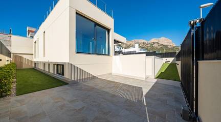 Key Ready New Build Villa with Sea Views in La Alberca PolopLuxury Modern Villa in a Natural Mountain SettingThis key ready contemporary villa is located in La Alberca, a quiet residential area of Polop, surrounded by forest and mountains. Positioned in an elevated setting, the property enjoys panoramic views of the Mediterranean Sea, the mountains and the historic town center of Polop. The villa offers privacy, tranquility and excellent connections to the coast and nearby towns.Polop is a charming village in the Marina Baixa region of the Costa Blanca, known for its traditional character and natural surroundings. The property is close to all services in La Nucia, including shops, restaurants, sports centers and schools, while the beaches and vibrant coastal towns are just a short drive away.Spacious Layout Across Main Floor Basement and SolariumThe villa is distributed over a main floor, basement and rooftop solarium, offering generous living space and flexibility.On the main floor, a welcoming entrance hall with built in wardrobe leads to two en suite bedrooms, including a master suite with elevable window doors opening to a Juliette balcony and terrace. The open plan living and dining area connects seamlessly to a covered pergola terrace and a private saltwater swimming pool.The basement level features two additional en suite bedrooms with large windows, a flexible playroom or cinema room with water and electricity connections for a bar area, a fully equipped laundry room with Haier appliances and two technical storage rooms.The rooftop solarium provides expansive outdoor space with panoramic sea views and is prepared for future solar panel installation. An outdoor kitchen, multiple storage lockers and Mediterranean style landscaped garden with automatic irrigation complete the exterior.High End Features and Energy EfficiencyThis villa stands out for its premium finishes and advanced installations, including:Central kitchen island with integrated BOSCH appliancesNatural stone countertops indoors and outdoorsUnderfloor heating pre installationMitsubishi aerothermal air conditioning systemEnergy efficiency rating Class APre installation for smart home systemSaltwater swimming pool with optional heatingPrivate parking for two vehiclesLarge windows with sun protection glass maximize natural light while ensuring comfort and security.Excellent Location and DistancesPolop center 2 kmLa Nucia 4 kmBenidorm 12 kmAltea 10 kmBeaches 10 kmVillaitana Golf 14 kmAlicante Airport 65 kmSecure Your Dream Home in PolopThis exceptional key ready villa combines privacy, design and panoramic views in one of the most attractive inland areas of the Costa Blanca. Contact us today to arrange a private viewing and make this luxury villa in La Alberca Polop your new home.