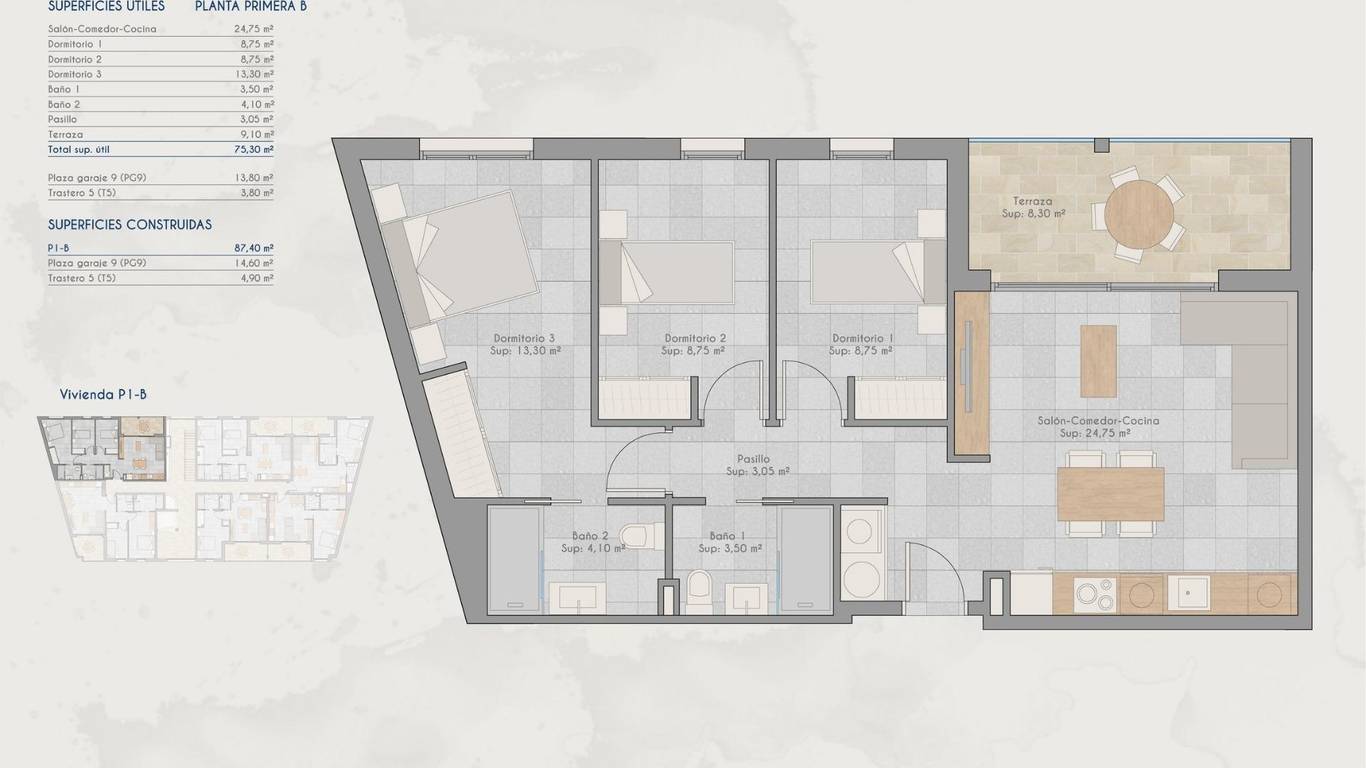 New Build Apartments for Sale in Lo Pagan (San Pedro del Pinatar) Near the BeachModern Mediterranean Living in Lo PaganDiscover these stylish new build apartments for sale in Lo Pagan, a charming coastal area within San Pedro del Pinatar on the beautiful Costa Calida. Located in the well known neighborhood of Los Cuarteros, this residential development offers a privileged lifestyle just 500 meters from the beach and close to all essential services, restaurants, shops and leisure areas.Lo Pagan is famous for its relaxed seaside atmosphere, the calm waters of the Mar Menor and more than 300 days of sunshine each year. The area combines traditional Spanish charm with modern amenities, making it an ideal destination for both permanent living and holiday homes.Contemporary Apartments with Terraces and Private SolariumsThe development offers a selection of ground floor and middle floor apartments with spacious terraces, as well as exclusive penthouses with private rooftop solariums. The solariums include a pergola and barbecue area, creating the perfect setting for outdoor dining and relaxing under the Mediterranean sun.Each property has been designed to combine contemporary architecture with warm Mediterranean style. The open plan kitchen integrates seamlessly with the living and dining area, creating bright and comfortable living spaces. Large terraces extend the indoor areas and provide the perfect place for outdoor breakfasts or evening gatherings.Bedrooms feature built in wardrobes and the modern bathrooms are fully equipped, offering comfort and elegant finishes throughout the home.Quality Features and Community FacilitiesThese homes are built with attention to detail and include high quality specifications to ensure comfort and efficiency.Fully furnished kitchen equipped with appliancesFully fitted bathrooms with modern finishesDucted air conditioning fully installedPrivate parking space and storage room included with every propertyResidents can also enjoy excellent communal facilities including a swimming pool surrounded by relaxation areas and a fully equipped gym, ideal for maintaining an active lifestyle all year round.Excellent Location on the Costa CalidaThis development enjoys a strategic location close to beaches, golf courses and key destinations along the coast.Playa de Villananitos 0.5 kmReal Club Nautico de Lo Pagan 0.5 kmLo Romero Golf 10 kmMurcia International Airport 40 kmCartagena 35 kmThe nearby beaches of the Mar Menor such as Playa de La Puntica are known for their fine sand calm waters, ideal for swimming, sailing and water sports.Your New Home by the Sea AwaitsEnjoy sunshine, beaches and a vibrant coastal lifestyle in one of the most sought after areas of the Costa Calida. Contact us today for more information about these new build apartments in Lo Pagan and secure your place by the sea.