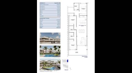 New Build Apartments and Bungalows for Sale in Pilar de la Horadada Near the BeachExclusive Residential Development on the Southern Costa BlancaDiscover this modern new build residential complex located in Pilar de la Horadada, the southernmost town on the Costa Blanca. This boutique development offers a selection of contemporary apartments and bungalows designed to combine comfort, functionality and Mediterranean lifestyle.The project consists of only 26 carefully designed homes with 2 or 3 bedrooms and 2 bathrooms, making it an ideal option for both permanent residence and holiday living. The complex is located in a quiet residential area within walking distance of the town center, where residents can enjoy restaurants, cafes, supermarkets, local shops and all essential services.Pilar de la Horadada is a charming Spanish town known for its welcoming atmosphere, lively main street and beautiful plazas. With excellent connections to nearby coastal areas and golf resorts, it is a popular destination for international buyers seeking sunshine and quality of life.Apartments and Bungalows with Private Outdoor SpacesThe development offers two different property types to suit various lifestyles.The complex includes 16 modern apartments. Buyers can choose between ground floor units with private gardens, middle floor apartments with spacious terraces or penthouses with private terraces and rooftop solariums. There are also 10 bungalows available. Ground floor bungalows feature private gardens and parking within the plot, while top floor bungalows offer terraces and private solariums.There are optional parkings and storages at underground for an extra cost.All homes have been designed with bright interiors, open layouts and comfortable living areas that extend naturally to the outdoor spaces.Quality Construction and Modern FeaturesThe homes are built with high quality materials and modern systems to ensure comfort and energy efficiency throughout the year.Furnished kitchensFully equipped bathrooms with shower screens and underfloor heatingEnergy efficient aerothermal hot water systemPre installation for ducted air conditioningResidents also benefit from a communal swimming pool surrounded by landscaped gardens and sunbathing areas, creating a relaxing environment to enjoy the Mediterranean climate.Excellent Location Close to Beaches and GolfThe development enjoys a strategic location close to some of the best beaches and golf courses in the region.Torre de la Horadada beach 3 kmMil Palmeras beach 3 kmLo Romero Golf 6 kmRegion de Murcia International Airport 45 kmAlicante Elche Airport 75 kmThe area also offers excellent road connections to nearby coastal towns, marinas and leisure facilities along both the Costa Blanca and Costa Calida.Find Your New Home in Pilar de la HoradadaThis attractive new build residential complex offers modern homes, quality finishes and a fantastic location close to the beach. Contact us today for more information or to arrange a visit and secure your new property on the Costa Blanca.