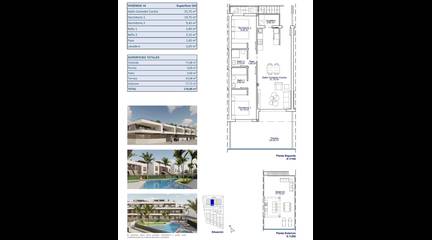 New Build Apartments and Bungalows for Sale in Pilar de la Horadada Near the BeachExclusive Residential Development on the Southern Costa BlancaDiscover this modern new build residential complex located in Pilar de la Horadada, the southernmost town on the Costa Blanca. This boutique development offers a selection of contemporary apartments and bungalows designed to combine comfort, functionality and Mediterranean lifestyle.The project consists of only 26 carefully designed homes with 2 or 3 bedrooms and 2 bathrooms, making it an ideal option for both permanent residence and holiday living. The complex is located in a quiet residential area within walking distance of the town center, where residents can enjoy restaurants, cafes, supermarkets, local shops and all essential services.Pilar de la Horadada is a charming Spanish town known for its welcoming atmosphere, lively main street and beautiful plazas. With excellent connections to nearby coastal areas and golf resorts, it is a popular destination for international buyers seeking sunshine and quality of life.Apartments and Bungalows with Private Outdoor SpacesThe development offers two different property types to suit various lifestyles.The complex includes 16 modern apartments. Buyers can choose between ground floor units with private gardens, middle floor apartments with spacious terraces or penthouses with private terraces and rooftop solariums. There are also 10 bungalows available. Ground floor bungalows feature private gardens and parking within the plot, while top floor bungalows offer terraces and private solariums.There are optional parkings and storages at underground for an extra cost.All homes have been designed with bright interiors, open layouts and comfortable living areas that extend naturally to the outdoor spaces.Quality Construction and Modern FeaturesThe homes are built with high quality materials and modern systems to ensure comfort and energy efficiency throughout the year.Furnished kitchensFully equipped bathrooms with shower screens and underfloor heatingEnergy efficient aerothermal hot water systemPre installation for ducted air conditioningResidents also benefit from a communal swimming pool surrounded by landscaped gardens and sunbathing areas, creating a relaxing environment to enjoy the Mediterranean climate.Excellent Location Close to Beaches and GolfThe development enjoys a strategic location close to some of the best beaches and golf courses in the region.Torre de la Horadada beach 3 kmMil Palmeras beach 3 kmLo Romero Golf 6 kmRegion de Murcia International Airport 45 kmAlicante Elche Airport 75 kmThe area also offers excellent road connections to nearby coastal towns, marinas and leisure facilities along both the Costa Blanca and Costa Calida.Find Your New Home in Pilar de la HoradadaThis attractive new build residential complex offers modern homes, quality finishes and a fantastic location close to the beach. Contact us today for more information or to arrange a visit and secure your new property on the Costa Blanca.