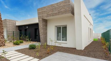 New Build Semi Detached Villas with Private Pool at La Finca Golf Resort AlgorfaModern Villas in a Prestigious Golf Resort on the Costa BlancaDiscover these elegant new build semi detached villas located in the exclusive La Finca Golf Resort in Algorfa, one of the most desirable residential areas on the Costa Blanca South. Surrounded by nature, golf courses and peaceful landscapes, this development offers the perfect balance between tranquility and proximity to essential services, beaches and leisure facilities.La Finca Golf Resort is well known for its championship golf course, luxury hotel, restaurants and wellness facilities. The nearby town of Algorfa maintains its traditional Spanish charm while offering convenient access to larger coastal destinations such as Torrevieja and the beautiful beaches of the southern Costa Blanca.Stylish Single Level Villas with Spacious LayoutsEach villa offers approximately 105 m2 of built area on generous plots from 450 m2. The homes are designed on a single level to maximize comfort and accessibility while providing bright and open living spaces.The property features three spacious bedrooms with built in wardrobes and two modern bathrooms, including a master bedroom with en suite bathroom. Bathrooms are equipped with mirrors and walk in showers with glass screens for a clean and contemporary design.The open plan kitchen integrates seamlessly with the living and dining area and includes a practical breakfast bar, creating a bright and functional space ideal for both everyday living and entertaining. A separate laundry room adds extra convenience to the home.An external staircase leads to the large private rooftop solarium, providing additional outdoor space to relax and enjoy the Mediterranean climate.Private Pool and Outdoor Mediterranean LifestyleLarge sliding glass doors connect the interior living area with the outdoor terrace and landscaped garden. Each villa includes a private swimming pool, creating the perfect environment for relaxing afternoons, outdoor dining and enjoying the warm Costa Blanca weather.The homes also include fully installed ducted air conditioning to ensure year round comfort.Prime Location Near Beaches Golf and AmenitiesThese villas are ideally located within walking distance of the golf course and close to many key destinations in the region.La Finca Golf Resort golf course walking distanceGuardamar del Segura beaches 20 kmZenia Boulevard shopping center 15 kmTorrevieja 20 kmAlicante Elche Airport 40 kmRegion de Murcia International Airport 55 kmThe area is also surrounded by additional golf courses, nature parks and coastal promenades, offering an excellent lifestyle for golf enthusiasts and beach lovers alike.Secure Your Villa at La Finca Golf ResortThese new build semi detached villas combine modern design, private outdoor living and a prime golf resort location. Contact us today to receive more information or schedule a visit and discover your new home at La Finca Golf Resort in Algorfa.
