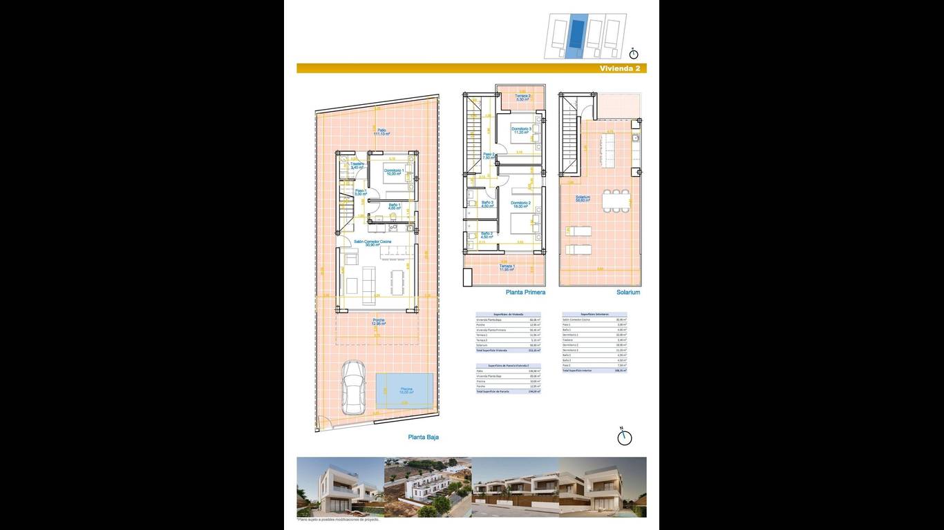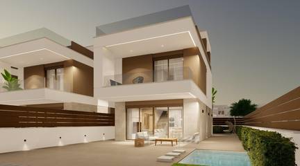 New Build Villas with Private Pool in Pilar de la Horadada Near the BeachExclusive Development of Modern Villas on the Costa BlancaDiscover this boutique development of only four independent villas in Pilar de la Horadada, one of the most attractive coastal towns in the southern Costa Blanca. Ideally located just 2 km from Las Higuericas beach and within walking distance to the town center, these homes offer the perfect combination of privacy, convenience and Mediterranean lifestyle.Set in a quiet residential area with south facing orientation, each villa enjoys sunlight throughout the day, making them especially appealing for international buyers seeking year round outdoor living.Contemporary Design with Customization OptionsOne of the standout features of this development is the ability to personalize your home to suit your lifestyle and preferences. These modern villas are designed with functionality and comfort in mind, combining clean architectural lines with practical living spaces.Each property is distributed over two floors plus a private rooftop solarium. The ground floor features a spacious open plan living and dining area with integrated kitchen, direct access to the front porch, a bedroom, a bathroom and a storage room with access to the rear patio.The first floor offers two additional bedrooms and two bathrooms, including an en suite master bedroom. Both bedrooms have access to private terraces, creating bright and airy spaces.Private Solarium and Outdoor Living SpacesThe rooftop solarium is designed for enjoying the Mediterranean climate, complete with a summer kitchen, outdoor shower and pre installation for a jacuzzi and solar panels. Each villa also includes a private swimming pool and on plot parking.These outdoor spaces provide the ideal setting for relaxing, entertaining and enjoying the sunny Costa Blanca lifestyle all year round.High Quality Finishes and Modern FeaturesThe villas are built to high standards and include premium features such as a reinforced security door, fully equipped kitchen with appliances, ducted air conditioning, electric shutters and aerothermal system for hot water.Bathrooms are fully fitted with furniture, mirrors, shower screens and underfloor heating. An LED lighting package and additional storage space further enhance comfort and functionality.Prime Location Close to Beaches and Golf CoursesPilar de la Horadada is known for its traditional Spanish charm, vibrant main street and excellent local amenities including shops, restaurants and cafes. The town offers easy access to some of the best beaches and golf courses in the region.Key distances include Las Higuericas beach 2 km, Torre de la Horadada beach 3 km, Mil Palmeras beach 3 km, Lo Romero Golf 6 km, Murcia International Airport 45 km and Alicante Airport 75 km.Ideal Investment or Holiday Home OpportunityThese new build villas offer an excellent opportunity to own a modern property near the beach in a highly desirable location on the Costa Blanca.Contact us today to receive more information or to arrange a visit and secure your new home in the sun.
