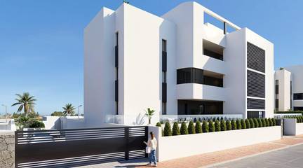 New Build Golf Front Apartments and Villas in La Serena Golf Los AlcazaresExclusive Residential Development Frontline to La Serena GolfDiscover this exceptional new build residential development located frontline to La Serena Golf in Los Alcazares, one of the most desirable coastal towns on the Costa Calida. This exclusive community offers a premium lifestyle surrounded by nature, open views and direct access to a renowned 18 hole golf course known for its flat terrain, scenic lakes and technical challenges.Ideally situated just 1.7 km from the beaches of the Mar Menor and the town center, residents can enjoy both tranquility and easy access to restaurants, shops and all essential services. Los Alcazares is well known for its relaxed atmosphere, long promenades and warm shallow waters, making it perfect for year round living or holiday stays.Modern Apartments with Terraces and Private SolariumsThe development includes 36 contemporary apartments distributed across four blocks. Buyers can choose between two or three bedroom layouts with two bathrooms, including an en suite.Ground floor apartments feature spacious terraces with the option to add a private pool. Middle floor units offer generous outdoor terraces, while penthouses include private solariums ideal for sunbathing and outdoor dining.All apartments include underground parking and a storage room with elevator access. The community also offers beautifully landscaped Mediterranean gardens and a large communal swimming pool for residents to enjoy.Stylish Single Level Villas with Private PoolIn addition to the apartments, the development offers nine exclusive single level villas. These homes feature three bedrooms, two bathrooms and an additional guest toilet, all designed to provide seamless indoor and outdoor living.Each villa includes a private swimming pool, garden, storage room and private parking. A spacious open basement provides additional flexible space that can be adapted to suit individual needs such as a gym, entertainment area or extra storage.High Quality Finishes and Energy Efficient DesignAll properties are built with high quality materials and modern specifications. Features include aluminum exterior carpentry with thermal break, fully equipped bathrooms with vanity units and glass shower screens, and pre installation for ducted air conditioning and furnished kitchens in apartments.Villas come with fully installed air conditioning systems and fully equipped kitchens with appliances. Elevators are available in apartment blocks, ensuring comfort and accessibility.Prime Location Close to Golf, Beaches and AmenitiesThis development offers excellent connectivity to key points of interest. Murcia International Airport is 35 km away and Alicante Airport is 95 km. The marina of Los Alcazares is just 2 km away, Dos Mares shopping center is 15 km and Roda Golf is only 4 km from the development. Cartagena city center is located 25 km away.Ideal Investment and Mediterranean Lifestyle OpportunityThis golf front development offers a unique opportunity to enjoy modern living in a privileged setting close to both the sea and golf.Contact us today to receive more information or to arrange a viewing and find your perfect home in Los Alcazares.