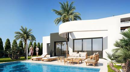 New Build Golf Front Apartments and Villas in La Serena Golf Los AlcazaresExclusive Residential Development Frontline to La Serena GolfDiscover this exceptional new build residential development located frontline to La Serena Golf in Los Alcazares, one of the most desirable coastal towns on the Costa Calida. This exclusive community offers a premium lifestyle surrounded by nature, open views and direct access to a renowned 18 hole golf course known for its flat terrain, scenic lakes and technical challenges.Ideally situated just 1.7 km from the beaches of the Mar Menor and the town center, residents can enjoy both tranquility and easy access to restaurants, shops and all essential services. Los Alcazares is well known for its relaxed atmosphere, long promenades and warm shallow waters, making it perfect for year round living or holiday stays.Modern Apartments with Terraces and Private SolariumsThe development includes 36 contemporary apartments distributed across four blocks. Buyers can choose between two or three bedroom layouts with two bathrooms, including an en suite.Ground floor apartments feature spacious terraces with the option to add a private pool. Middle floor units offer generous outdoor terraces, while penthouses include private solariums ideal for sunbathing and outdoor dining.All apartments include underground parking and a storage room with elevator access. The community also offers beautifully landscaped Mediterranean gardens and a large communal swimming pool for residents to enjoy.Stylish Single Level Villas with Private PoolIn addition to the apartments, the development offers nine exclusive single level villas. These homes feature three bedrooms, two bathrooms and an additional guest toilet, all designed to provide seamless indoor and outdoor living.Each villa includes a private swimming pool, garden, storage room and private parking. A spacious open basement provides additional flexible space that can be adapted to suit individual needs such as a gym, entertainment area or extra storage.High Quality Finishes and Energy Efficient DesignAll properties are built with high quality materials and modern specifications. Features include aluminum exterior carpentry with thermal break, fully equipped bathrooms with vanity units and glass shower screens, and pre installation for ducted air conditioning and furnished kitchens in apartments.Villas come with fully installed air conditioning systems and fully equipped kitchens with appliances. Elevators are available in apartment blocks, ensuring comfort and accessibility.Prime Location Close to Golf, Beaches and AmenitiesThis development offers excellent connectivity to key points of interest. Murcia International Airport is 35 km away and Alicante Airport is 95 km. The marina of Los Alcazares is just 2 km away, Dos Mares shopping center is 15 km and Roda Golf is only 4 km from the development. Cartagena city center is located 25 km away.Ideal Investment and Mediterranean Lifestyle OpportunityThis golf front development offers a unique opportunity to enjoy modern living in a privileged setting close to both the sea and golf.Contact us today to receive more information or to arrange a viewing and find your perfect home in Los Alcazares.