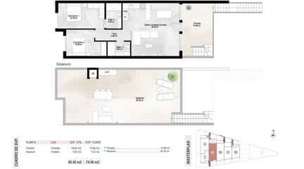 Bedrooms: 1, Bathrooms: 1 Total area: 74 m2 Living area: 65 m2