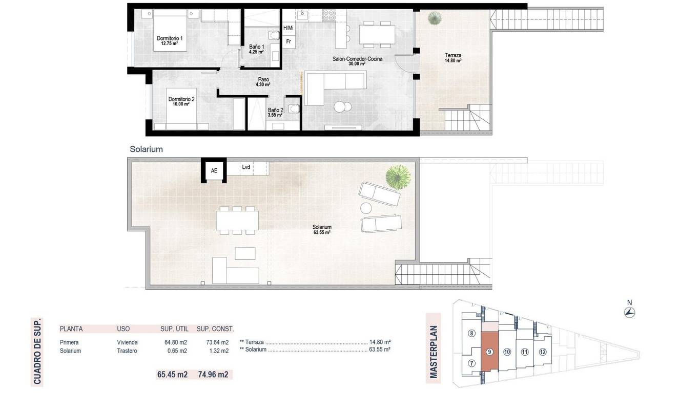Modern Apartments with comunal Pool Near the Beach in San Pedro del PinatarExclusive New Build Apartments on the Costa CalidaDiscover this boutique development of 12 modern apartments designed to offer comfort, functionality and quality of life in one of the most attractive areas of the Costa Calida. Located close to Lo Pagan in San Pedro del Pinatar, this residential complex combines a residential environment with easy access to the coast and all essential services.The area is well known for its relaxed Mediterranean lifestyle, natural beaches and famous mud baths. With shops, restaurants, supermarkets and leisure facilities nearby, this location is ideal for both permanent living and holiday stays.Prime Location Close to Beaches and PromenadeThe development is situated just 3 km from the beaches of La Torre and the popular Lo Pagan promenade, where you can enjoy seaside walks, beach bars and water sports activities. The Mar Menor offers calm and warm waters, perfect for families and outdoor enthusiasts.Contemporary Design with Flexible LayoutsThe project offers 1 and 2 bedroom apartments in different configurations to suit various lifestyles. Ground floor properties feature large private terraces, parking within the plot and direct access to the communal pool. Top floor apartments include private rooftop solariums, ideal for enjoying the sun and outdoor living.All homes are designed with open plan living spaces, combining kitchen, dining and lounge areas with direct access to terraces. Bedrooms include built in wardrobes, and the master bedroom benefits from an en suite bathroom.High Quality Finishes and Energy EfficiencyThese apartments are built with a focus on comfort and sustainability. Features include pre installation for ducted air conditioning, pre installation for natural gas central heating and an aerothermal system for hot water.Bathrooms are fully equipped with furniture, mirrors and shower screens, while electric shutters are installed in the living room. Additional technical lighting and ventilation systems ensure a comfortable indoor environment throughout the year.Communal Areas Designed for RelaxationThe residential complex offers a beautifully designed communal area with a swimming pool featuring a beach style entrance, perfect for relaxing and cooling off. A dedicated chill out zone with sun loungers and shaded areas creates a welcoming space to socialize and unwind.Additional facilities include outdoor parking with pre installation for electric vehicle charging and a communal bicycle storage area, promoting a sustainable and active lifestyle.Excellent Connectivity and Nearby AmenitiesThis development is ideally located with easy access to key points of interest. Murcia International Airport is approximately 35 km away and Alicante Airport around 75 km. Several golf courses are within 10 to 15 km, and nearby marinas offer excellent nautical facilities.Ideal Investment or Holiday Home OpportunityThese apartments offer an excellent opportunity to enjoy modern coastal living in a well connected and sought after area.Contact us today for more information or to arrange a viewing and secure your new apartment near the sea in San Pedro del Pinatar.