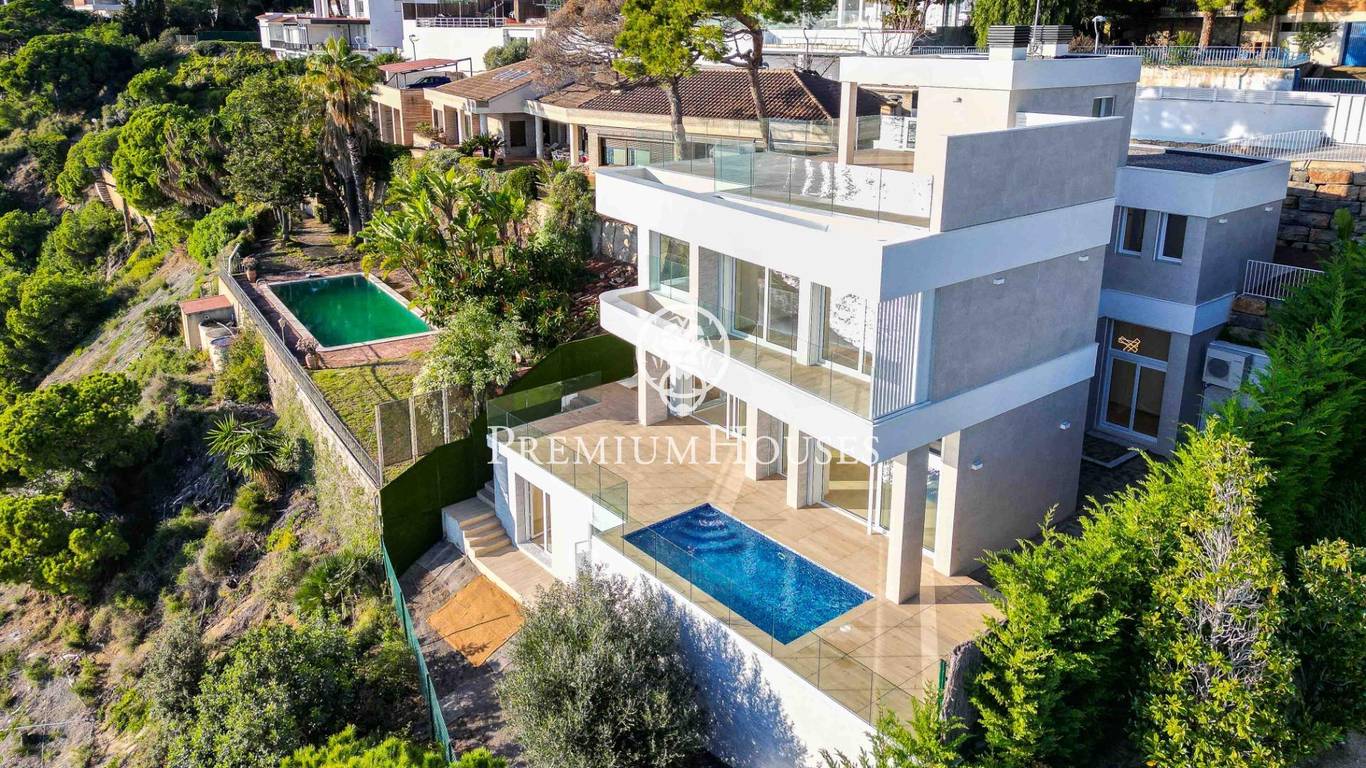 Located in Arenys de Mar, an enclave where luxury and sophistication merge with the serenity of the coastal environment, this exclusive property was built in 2025 and is brand new, designed to satisfy the most demanding tastes. The property has four bedrooms and five bathrooms, three of which are en-suite, offering maximum comfort and privacy.From the moment you step inside, the house exudes an atmosphere of elegance and spaciousness, with bright rooms opening onto stunning panoramic views of the sea, mountains and harbour. The high-quality marble and tile finishes, together with a modern and functional design, create a sophisticated and welcoming environment. The spacious 35 m terraces and south-west facing balcony invite you to enjoy the Mediterranean climate and sea breeze all year round.Its most notable features include a private swimming pool, a carefully designed garden and a state-of-the-art alarm system, ensuring comfort, exclusivity and security. The property also has a garage for two vehicles with an electric charger, guest bathrooms, separate toilet facilities and an aerothermal heating system, ensuring energy efficiency and comfort in all seasons.This property is not just a house, but an authentic seaside living experience. A unique opportunity to enjoy contemporary luxury in the heart of the Maresme Coast, ideal for those seeking excellence, tranquillity and a privileged setting.