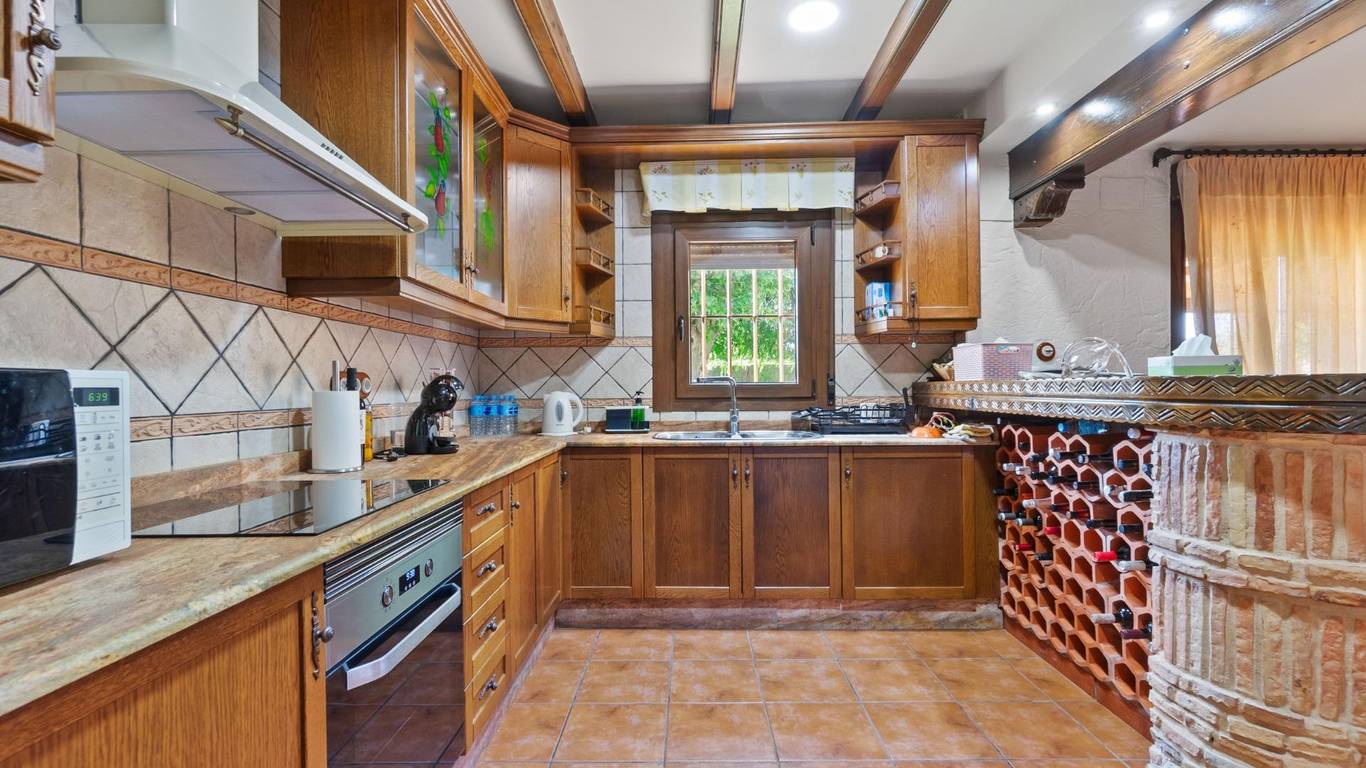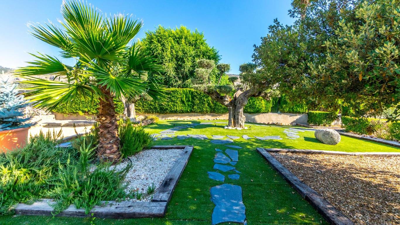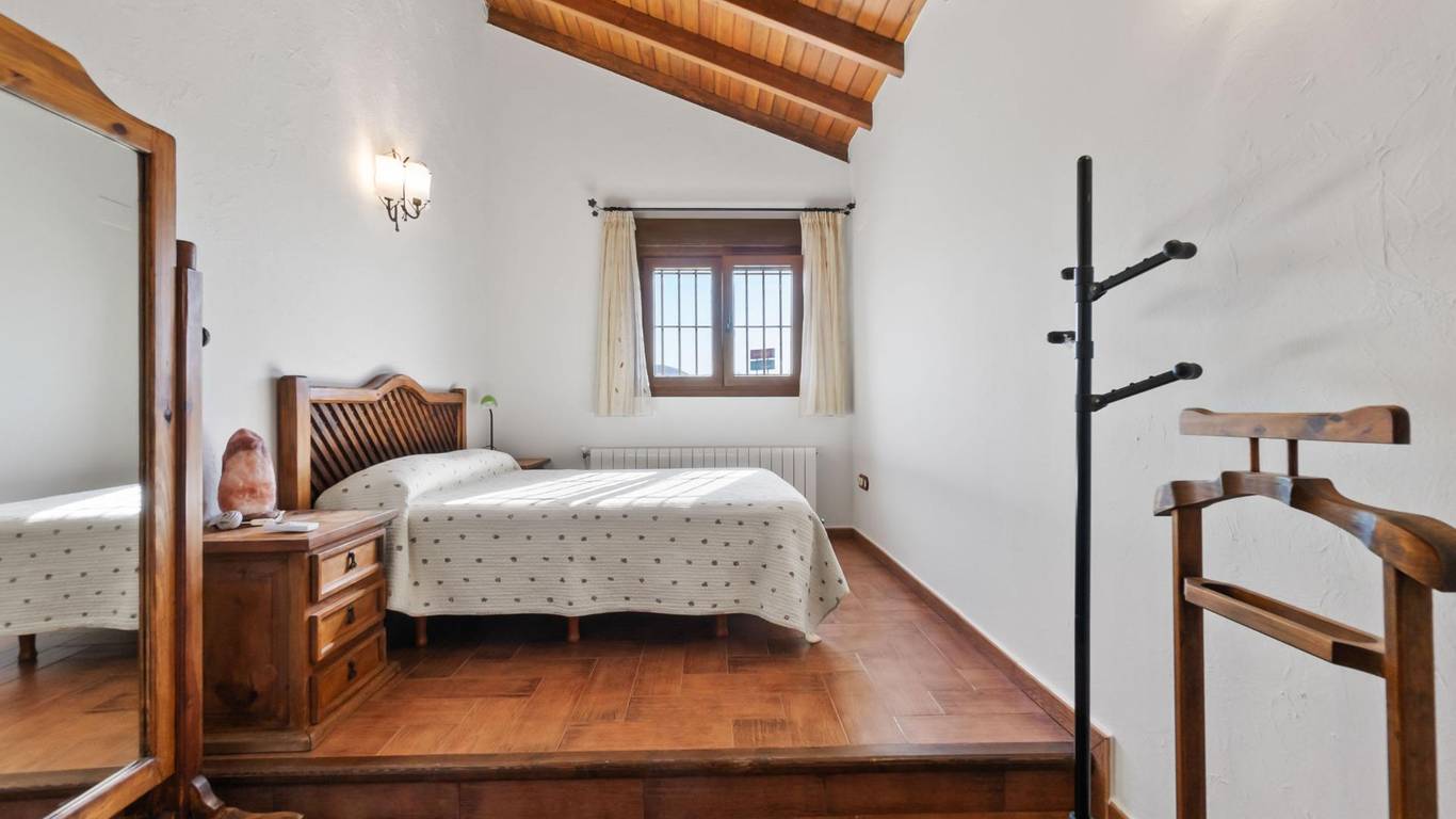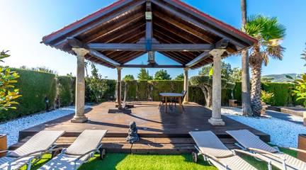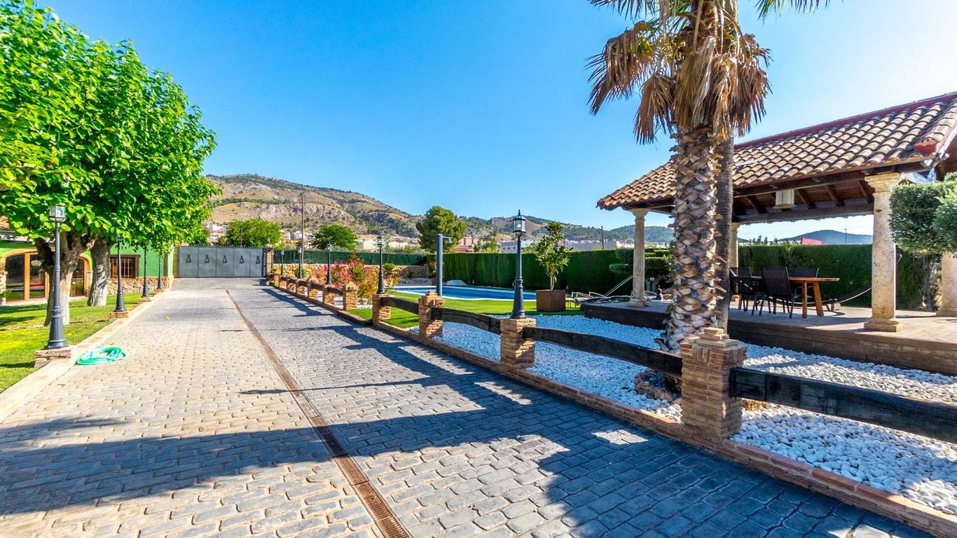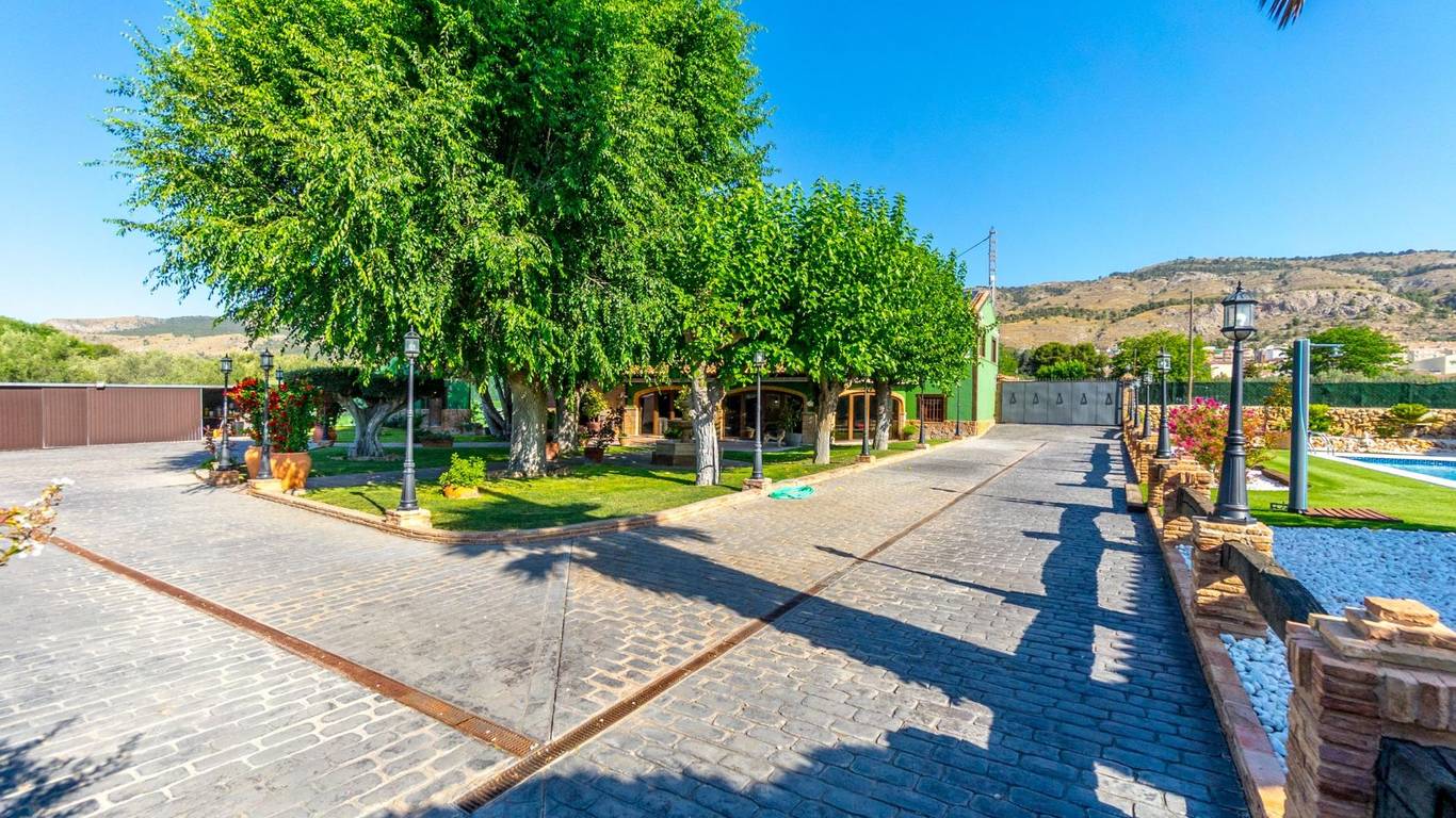 Exclusive chalet in Onil, situated on a 5,968 m plot divided into two distinct zones and fully fenced with security cameras, ideal for those seeking privacy, comfort and versatile outdoor space.RESIDENTIAL AREA (1,700 m)The main house features a large private pool with an elegant built porch and exterior parking for up to 4 vehicles. It also includes two water wells for irrigation, combining convenience and efficiency. The property layout is:GROUND FLOOR: Two living rooms one spacious and bright interior, and one exterior with large windows overlooking the garden, including a built-in barbecue. The interior living room leads to a kitchen with gallery and a full bathroom.UPPER FLOOR: Four bedrooms, two bathrooms and a large terrace with unobstructed views of the surroundings.ORIENTAL GARDEN (4,268 m)A space with personality, featuring wooden pergolas, walking paths, corners decorated with statues, oriental plants and decorative elements. Includes a storage building that can be converted into a guest house or recreational area. Perfect for events, relaxation, or outdoor projects.COMFORT AND EFFICIENCYThe chalet is ready for year-round living, equipped with oil heating and solar panels, combining comfort and sustainability.LOCATIONLess than 700 metres from the centre of Onil, a charming town in the lAlcoià region, known for its toy-making tradition, local festivals and natural surroundings near the mountains. Onil has a Mediterranean climate with mild winters and very rare snow, making it perfect to enjoy the property all year.A unique property for those seeking a home with character, privacy and extensive possibilities for enjoyment.