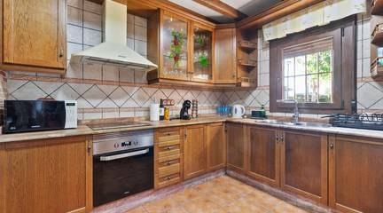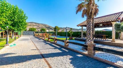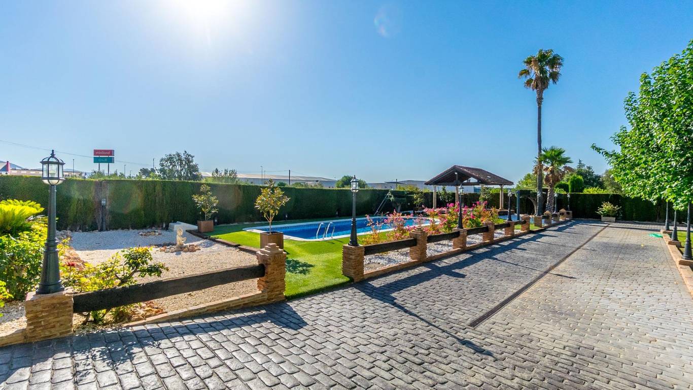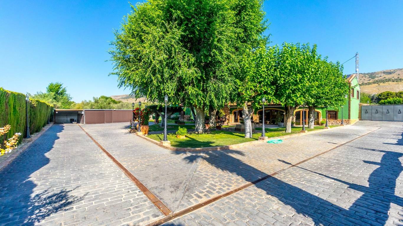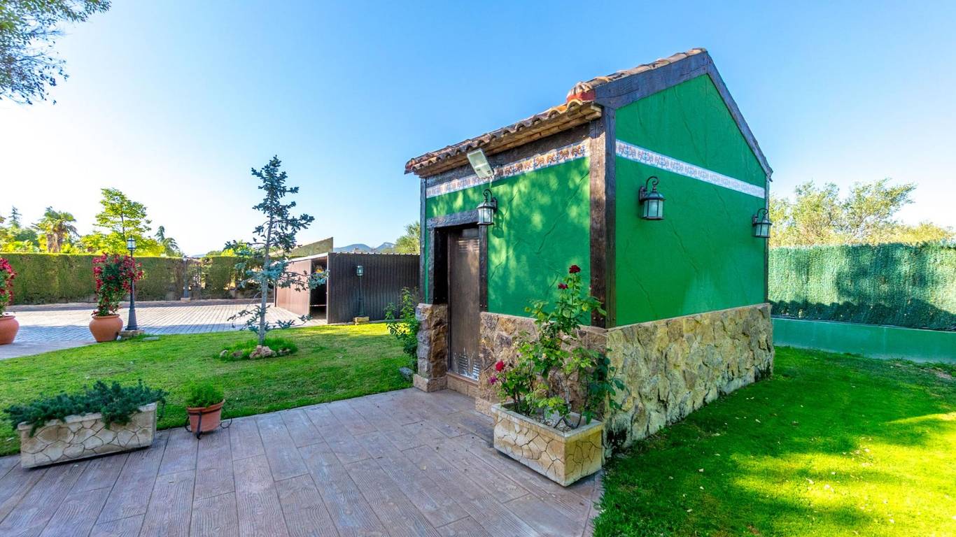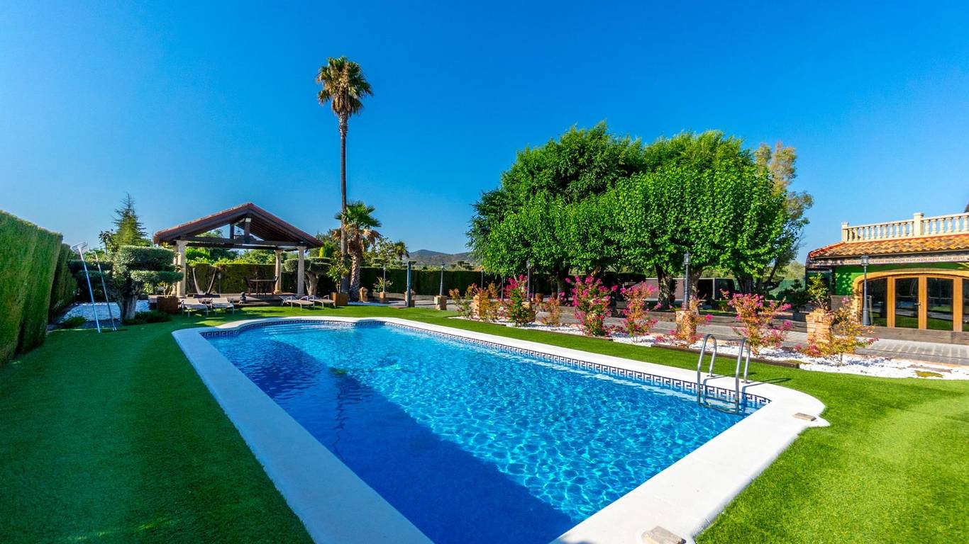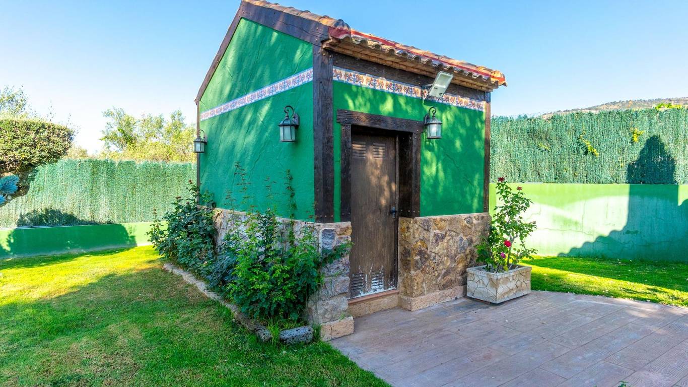 Exclusive chalet in Onil, situated on a 5,968 m plot divided into two distinct zones and fully fenced with security cameras, ideal for those seeking privacy, comfort and versatile outdoor space.RESIDENTIAL AREA (1,700 m)The main house features a large private pool with an elegant built porch and exterior parking for up to 4 vehicles. It also includes two water wells for irrigation, combining convenience and efficiency. The property layout is:GROUND FLOOR: Two living rooms one spacious and bright interior, and one exterior with large windows overlooking the garden, including a built-in barbecue. The interior living room leads to a kitchen with gallery and a full bathroom.UPPER FLOOR: Four bedrooms, two bathrooms and a large terrace with unobstructed views of the surroundings.ORIENTAL GARDEN (4,268 m)A space with personality, featuring wooden pergolas, walking paths, corners decorated with statues, oriental plants and decorative elements. Includes a storage building that can be converted into a guest house or recreational area. Perfect for events, relaxation, or outdoor projects.COMFORT AND EFFICIENCYThe chalet is ready for year-round living, equipped with oil heating and solar panels, combining comfort and sustainability.LOCATIONLess than 700 metres from the centre of Onil, a charming town in the lAlcoià region, known for its toy-making tradition, local festivals and natural surroundings near the mountains. Onil has a Mediterranean climate with mild winters and very rare snow, making it perfect to enjoy the property all year.A unique property for those seeking a home with character, privacy and extensive possibilities for enjoyment.