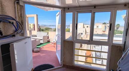 This magnificent duplex is presented, located in Torrevieja, in the quiet Lago Sal urbanization, a residential area highly valued for its natural surroundings and its excellent connection to all services, just a few minutes from Carrefour Torrevieja.The property, a duplex type, offers a comfortable and functional layout. It has three bedrooms, ideal both for families and for receiving guests, and features a large private solarium from which pleasant views of the Salt Lakes of Torrevieja can be enjoyed, a unique natural environment characterized by its pink lagoons and its high ecological value.On the exterior level, the property stands out for its large patio-garden of approximately 101 m, a versatile space where it is possible to park the car comfortably within the plot. In addition, thanks to its size, it offers multiple possibilities, including the option of building a private swimming pool, chill-out area or barbecue area.Located on a spacious plot, the property guarantees privacy and tranquility, being perfect both as a permanent residence and to enjoy holidays.Surroundings and ServicesThe Lago Sal area is characterized by its proximity to all necessary services:Supermarkets and large stores (including Carrefour)Restaurants, bars and cafésShopping centers and leisure areasEducational and healthcare centersPublic transport and good road connectionsIn the surroundings, there is also a bar with a swimming pool open to the public, ideal to enjoy in summer without the need to travel.The property is located very close to the Natural Park of the Lagoons of La Mata and Torrevieja, a privileged natural enclave perfect for walking, cycling and outdoor activities.Distances of interestBeaches of Torrevieja: approximately 10 minutes by carCenter of Torrevieja: 1015 minutesAlicante-Elche Airport: 4045 minutes by carQuick access to the AP-7 and N-332Advantages of living or holidaying hereLiving in this area of Torrevieja means enjoying an exceptional Mediterranean climate all year round, with more than 300 days of sunshine, clean air thanks to the proximity of the salt lakes and a relaxed atmosphere.It is a perfect location for those looking for:Tranquility without giving up nearby servicesNature and well-being (salt lakes with health benefits)Spacious outdoor areas and privacyExcellent option as an investment or second residenceIn addition, as a holiday home, it offers everything necessary: proximity to beaches, leisure, restaurants and unique natural spaces, making it an ideal place to disconnect and enjoy.