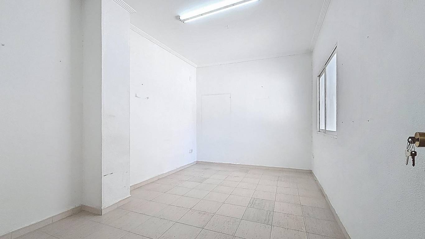 Actualmente se distribuye en una zona delantera con 3 estancias pasantes con suelo de gres, puerta de entrada y ventanas a la plaza, lo que aporta luz natural y posibilidad de imagen comercial. En la parte trasera cuenta con un espacio amplio, con acceso independiente mediante persiana metálica, que se encuentra prácticamente en bruto, ideal para acondicionarlo según las necesidades del futuro comprador.