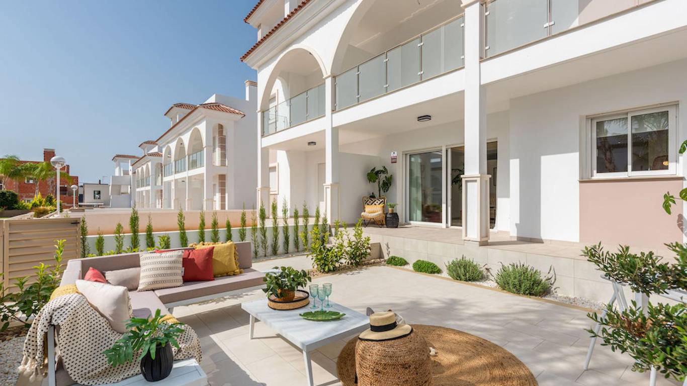 Welcome to this new residence in the heart of Ciudad Quesada. These apartments with an authentic Spanish appearance, located near all amenities, offer a choice between a ground floor with garden or the top floor with a roof terrace.