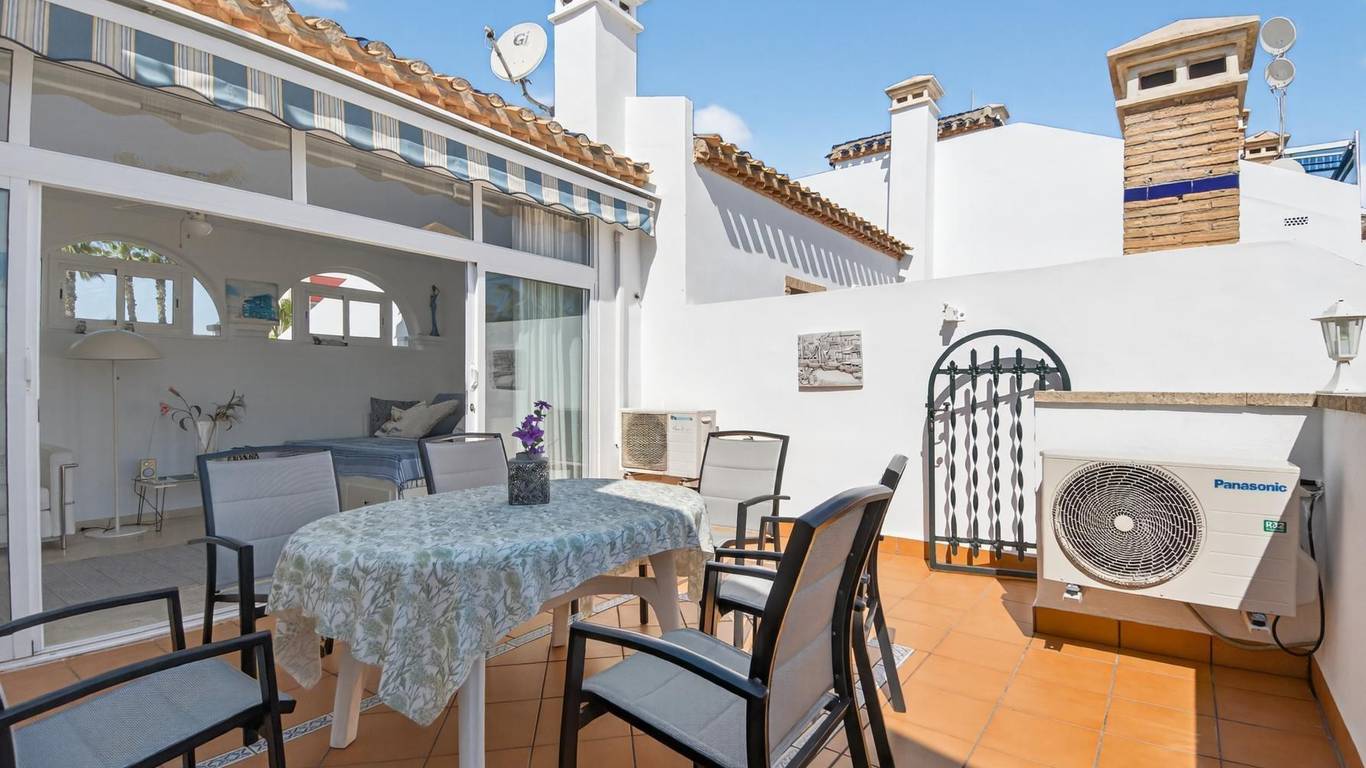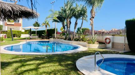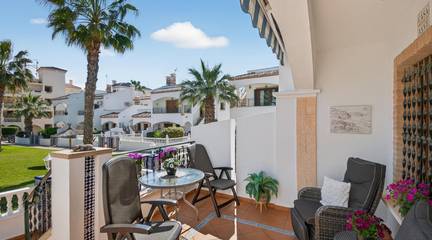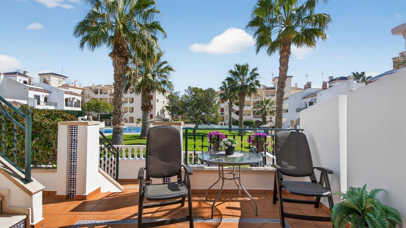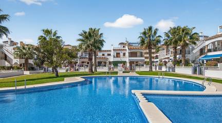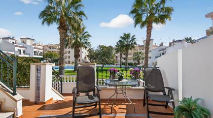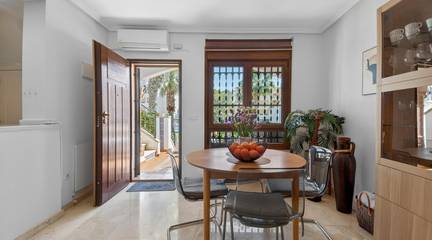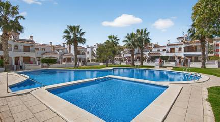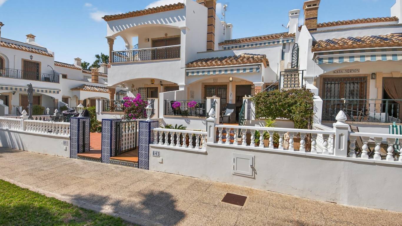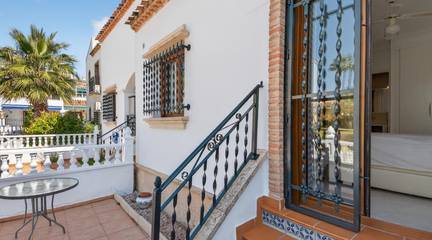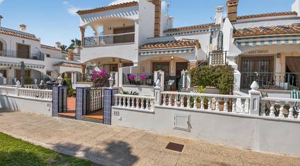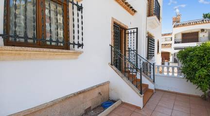 Ground-floor townhouse with solarium located in the gated community Jumilla III, in Playa Flamenca, Orihuela Costa. The residential complex features a communal swimming pool and a well-maintained, peaceful environment, ideal for both permanent living and holiday use.