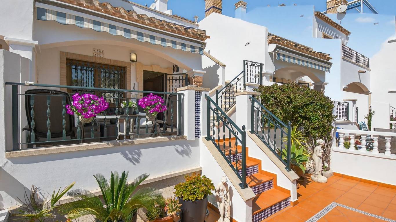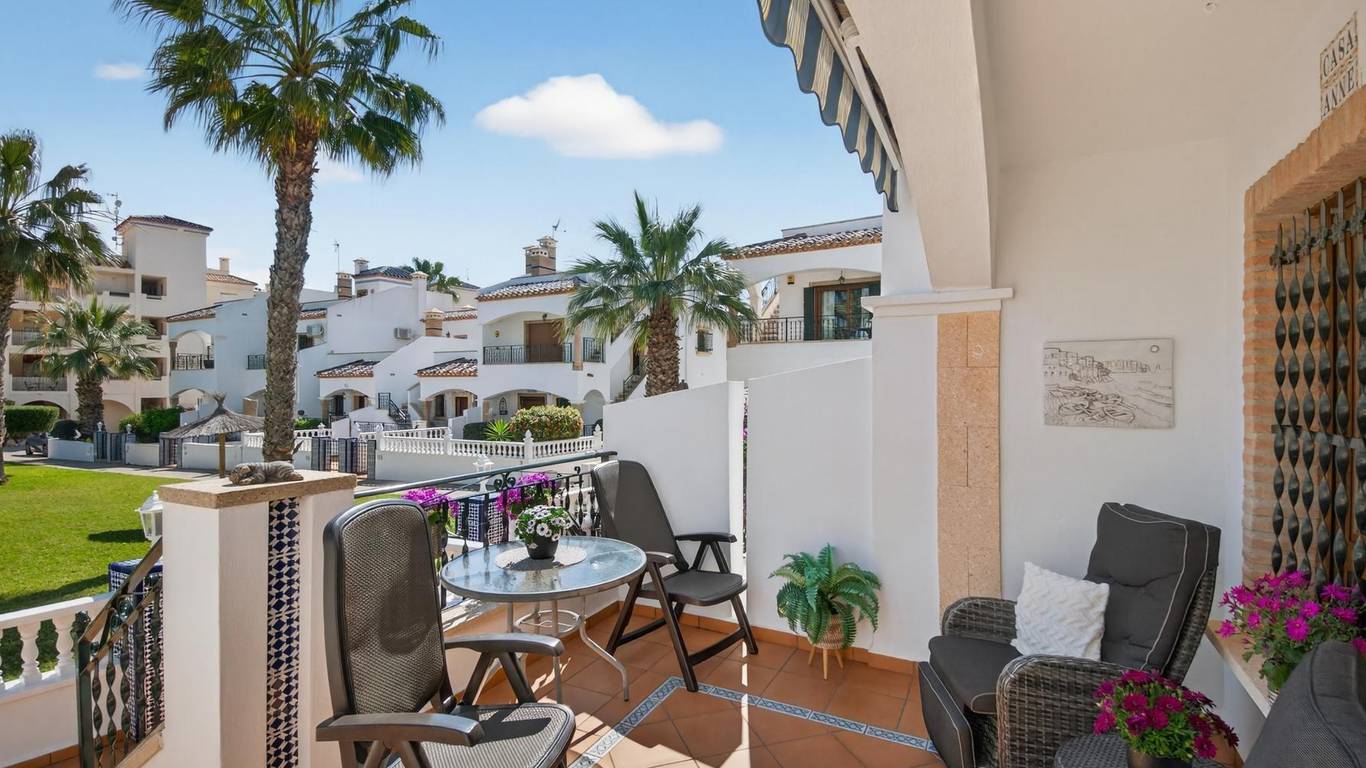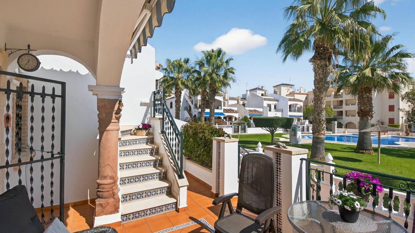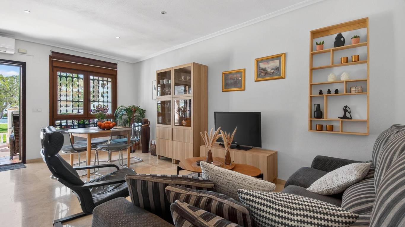 Ground-floor townhouse with solarium located in the gated community Jumilla III, in Playa Flamenca, Orihuela Costa. The residential complex features a communal swimming pool and a well-maintained, peaceful environment, ideal for both permanent living and holiday use.