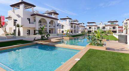 These apartments with an authentic Spanish appearance, located near all amenities, offer a choice between a ground floor with garden or the top floor with a roof terrace.
