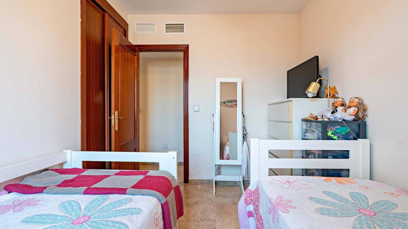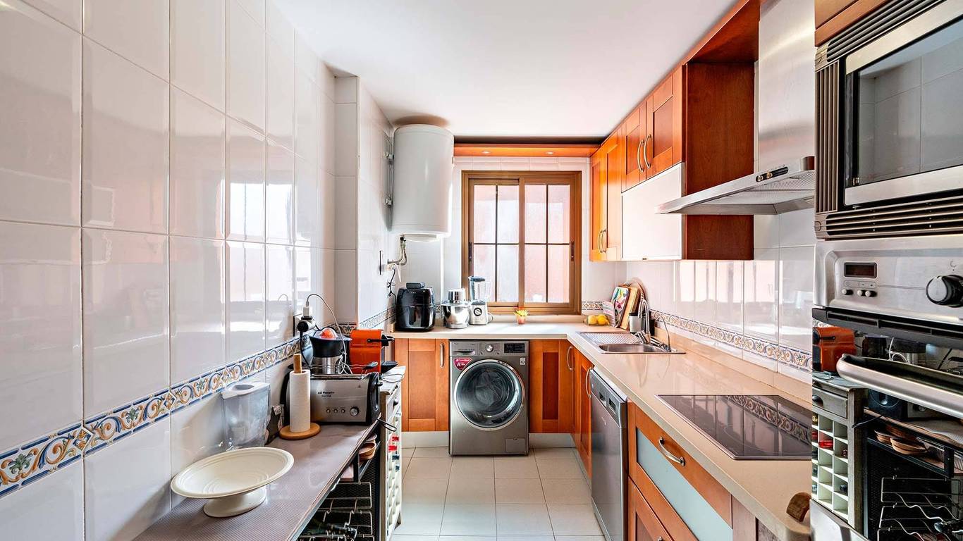 Cuenta con 103 m construidos distribuidos en vestíbulo con gran armario empotrado, salón-comedor, tres dormitorios con armarios empotrados, dos cuartos de baño (uno de ellos en suite), cocina equipada y amueblada, y una magnífica terraza de 16 m con vistas al mar.