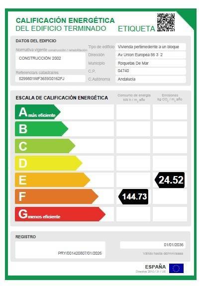 Beaches: Playa de las Salinas - 400m; Playa de la Romanilla - 400m; Playa de la Bajadilla - 2240m; Playa de la Urbanización de Roquetas de Mar - 3500m