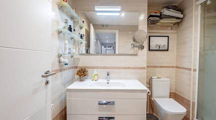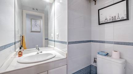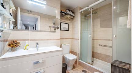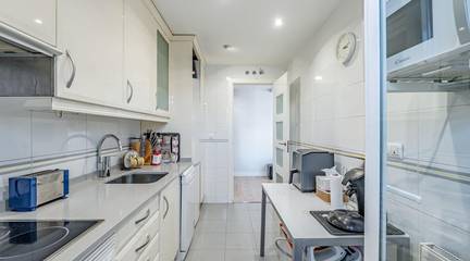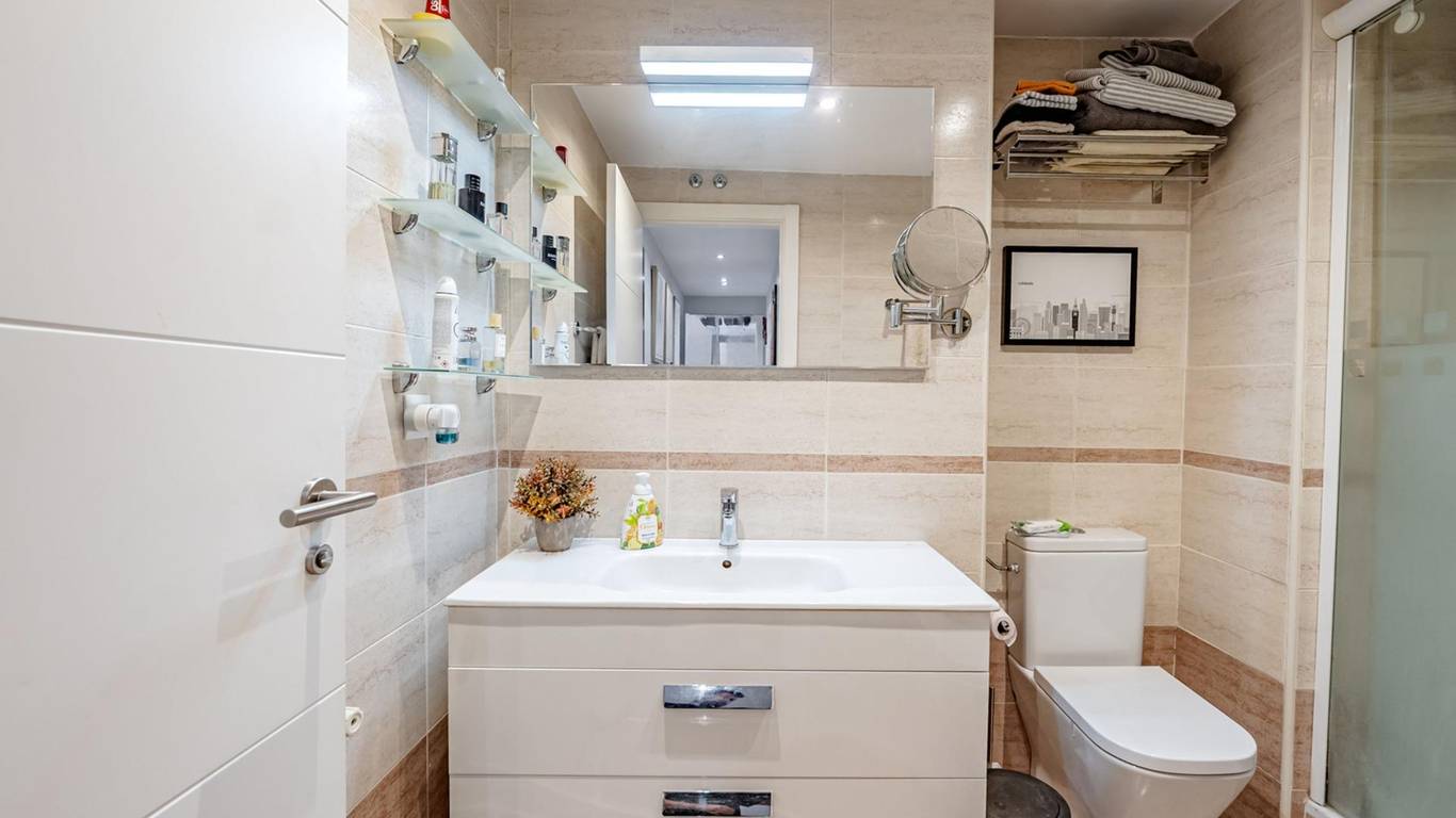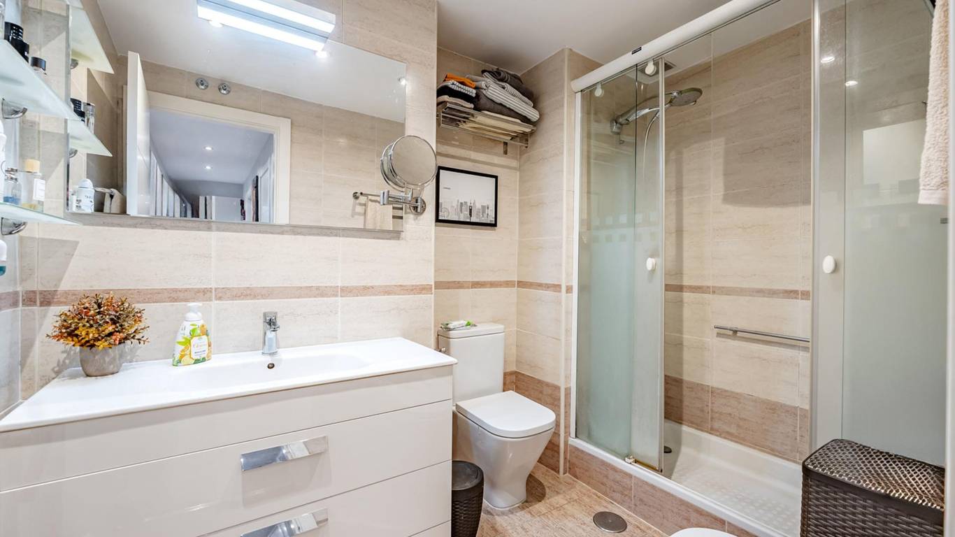 Cuenta con dos dormitorios, siendo el principal en suite con cuarto de baño completo, además de un aseo adicional que da servicio al resto de la vivienda. La cocina es independiente y dispone de una práctica terraza tendedero.