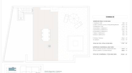 Aerothermal system for domestic hot water. Furnished kitchens with appliances included. Interior and exterior lighting package included. Bathrooms with vanity units, mirrors and shower screens. Jacuzzi included in penthouse solariums.